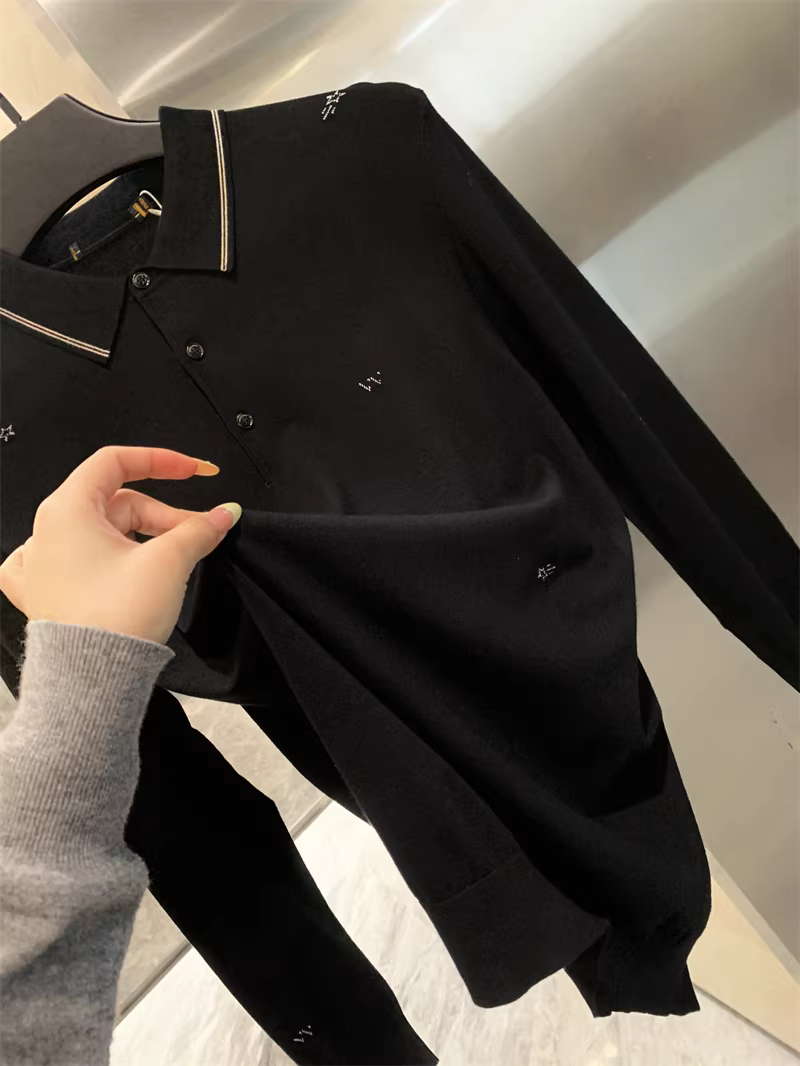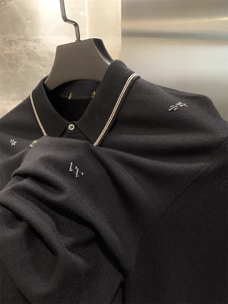 - Don Quixote H series! Chất liệu dệt kim co giãn cao! Áo polo nam tay dài nửa khóa kéo chất liệu dệt kim mùa xuân thu