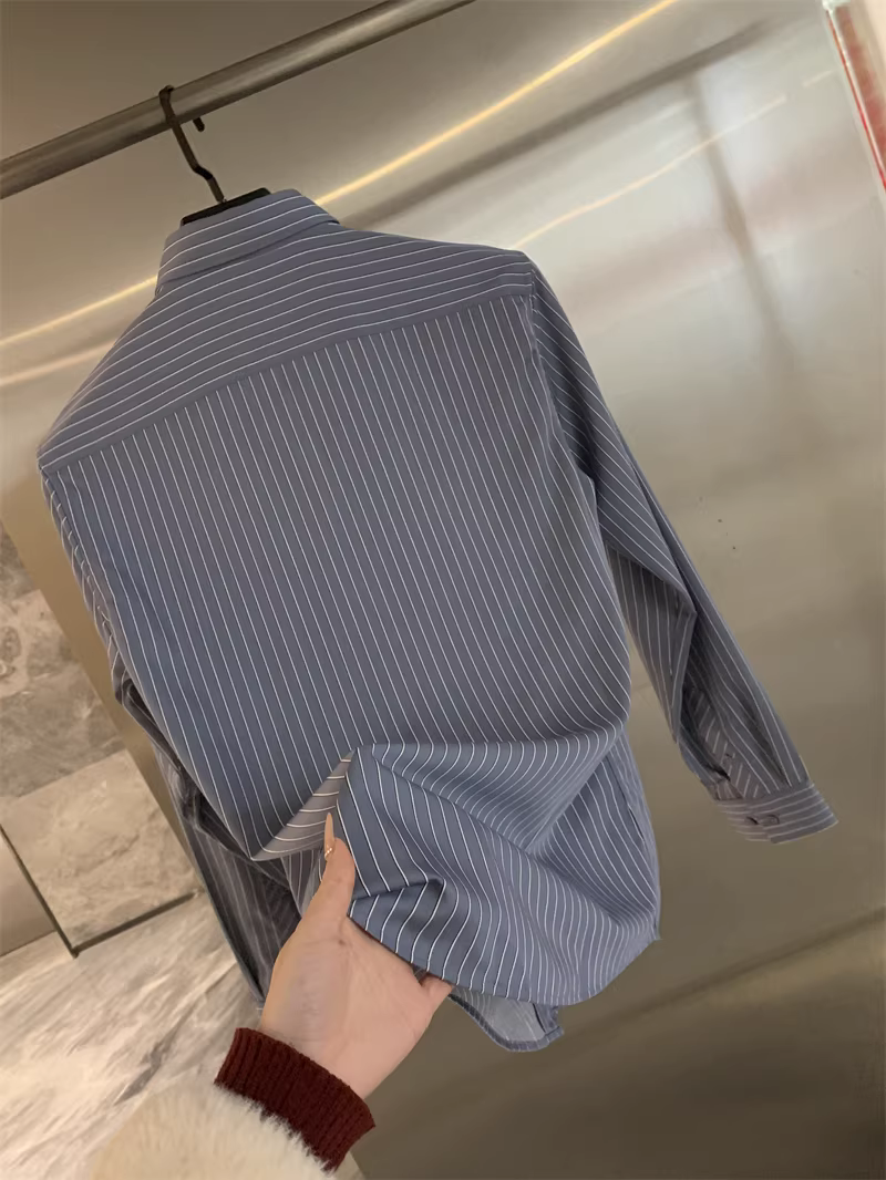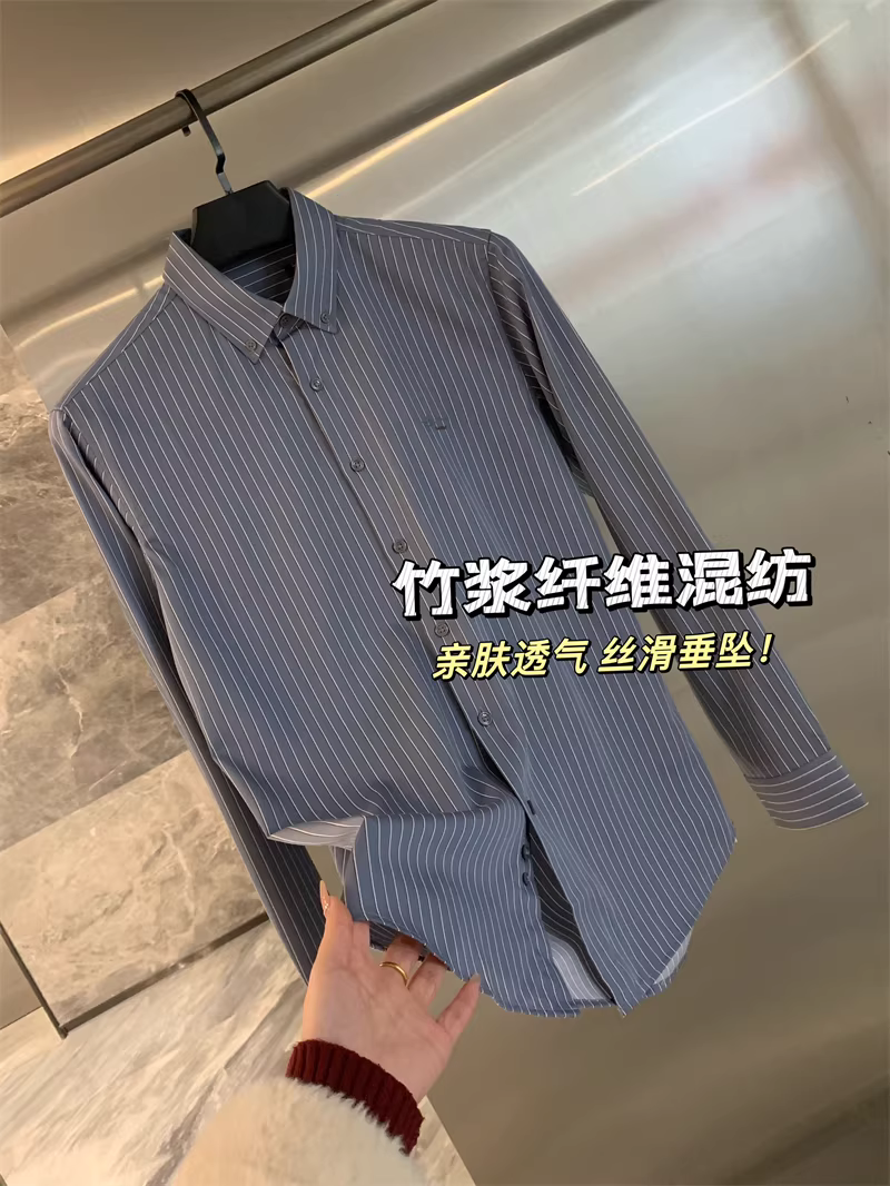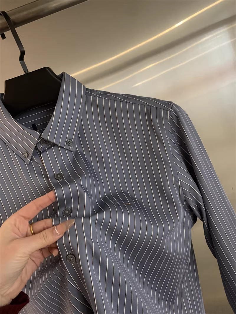 Don Quixote Hàng Tốt! Mềm mịn như lụa! Áo sơ mi nam dài tay kẻ sọc dọc cổ trụ mùa xuân thu.