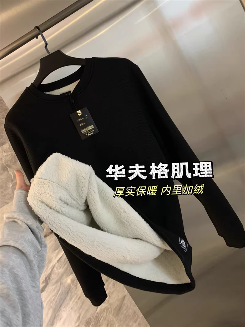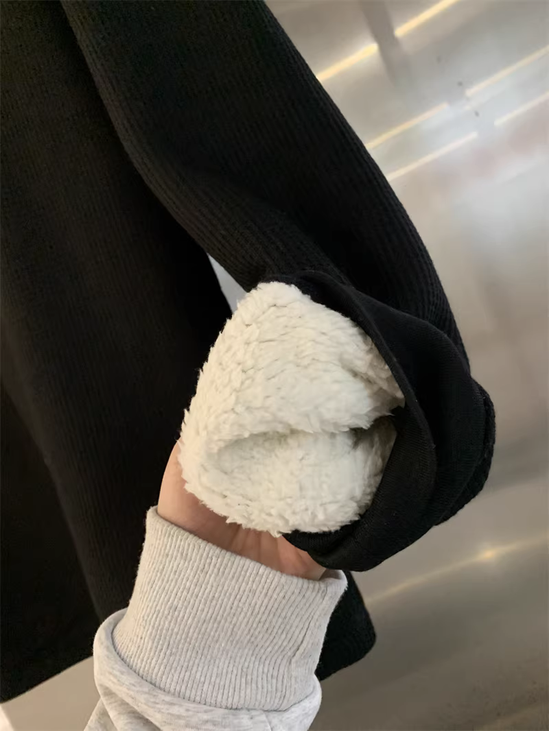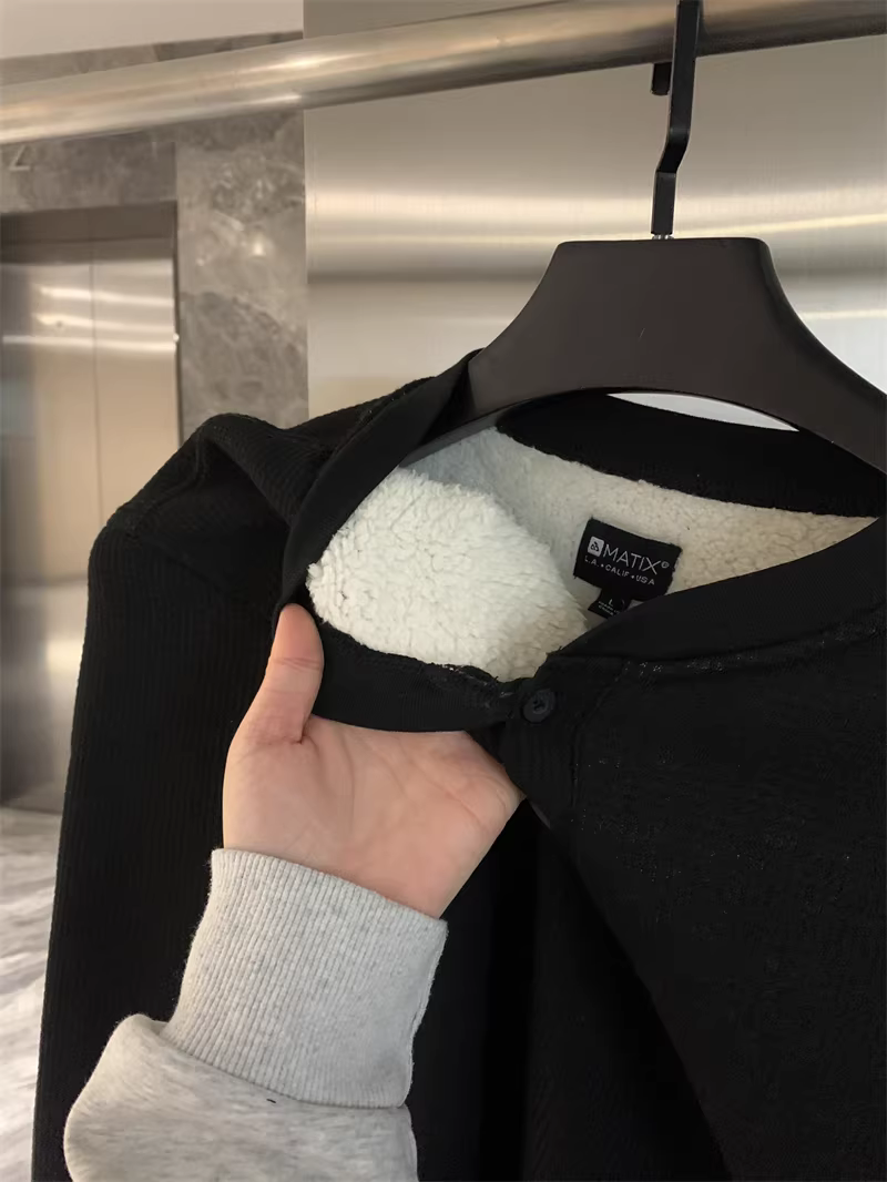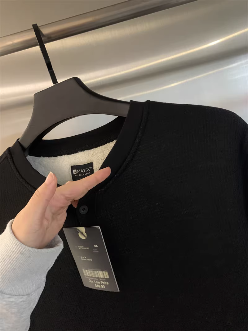 Don Quixote, hãy đi theo phong cách Mỹ! Áo len nam mùa thu đông chất liệu vải tổ ong, lót lông cừu, dày dặn, ấm áp, cổ Henry, kiểu dáng thời trang.
