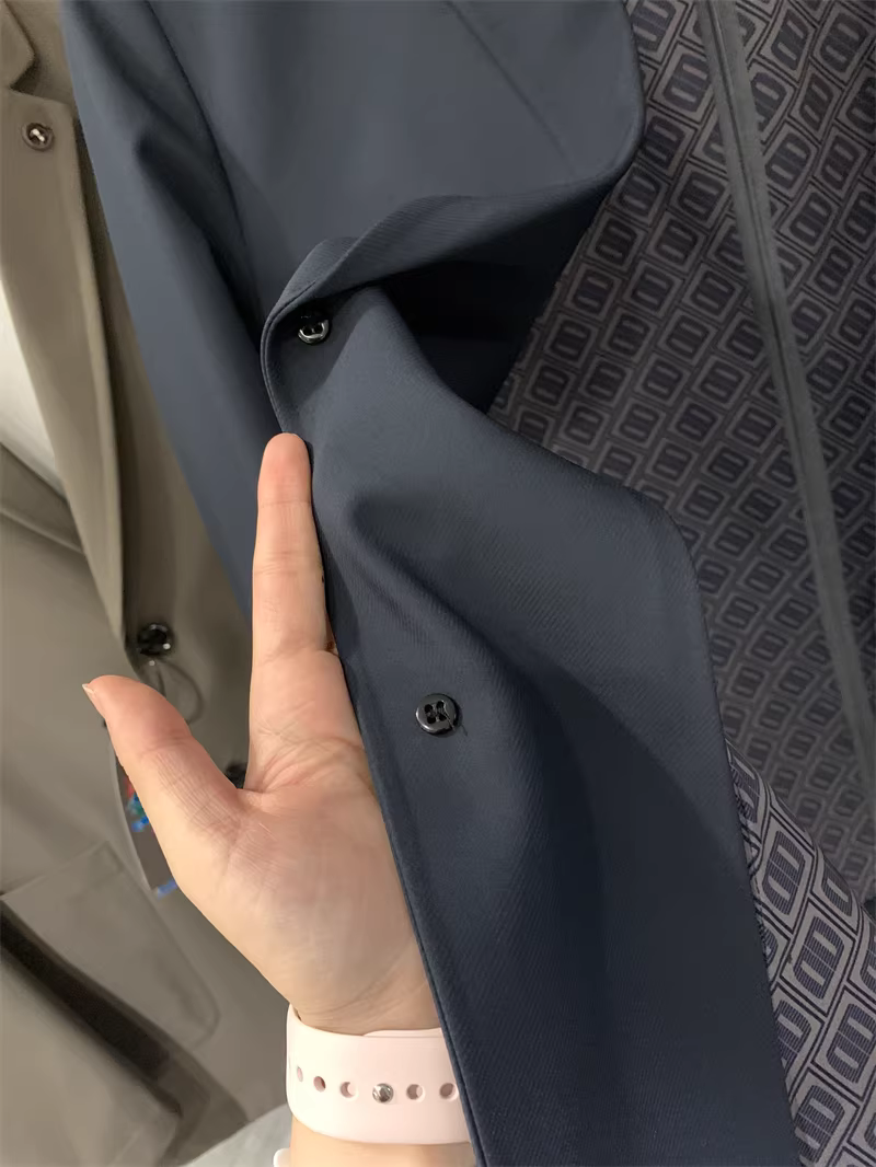 肩颈的线条、前后身的腰线、纽扣的锁眼定位等等 都很细致考究!