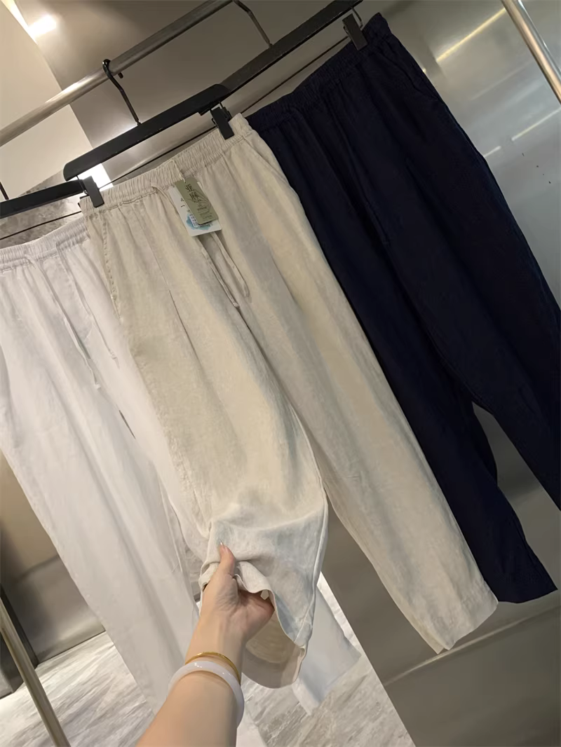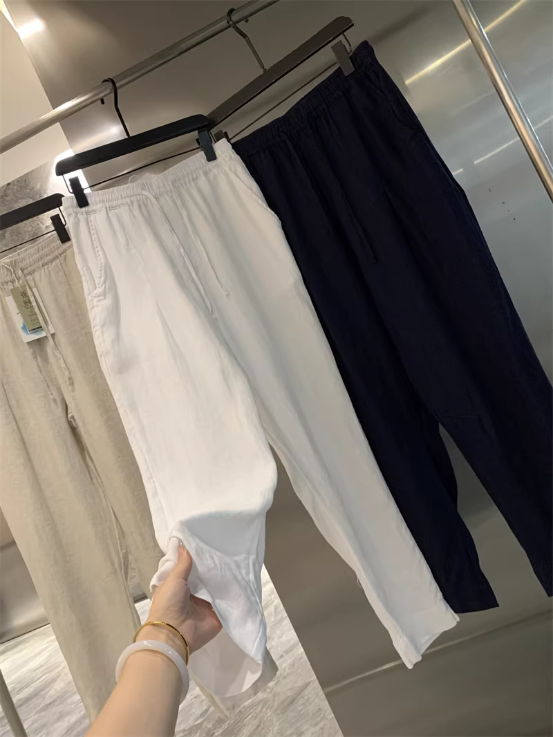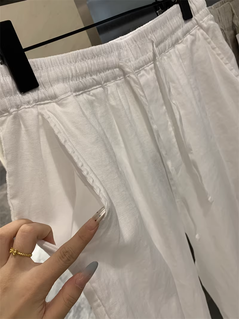 Don Quixote là loại vải lanh 100% được dệt tinh xảo! Quần nam chất liệu vải lanh mỏng, thấm hút mồ hôi, thoáng khí, lưng thun, dáng thẳng, phong cách thường ngày, hợp thời trang.