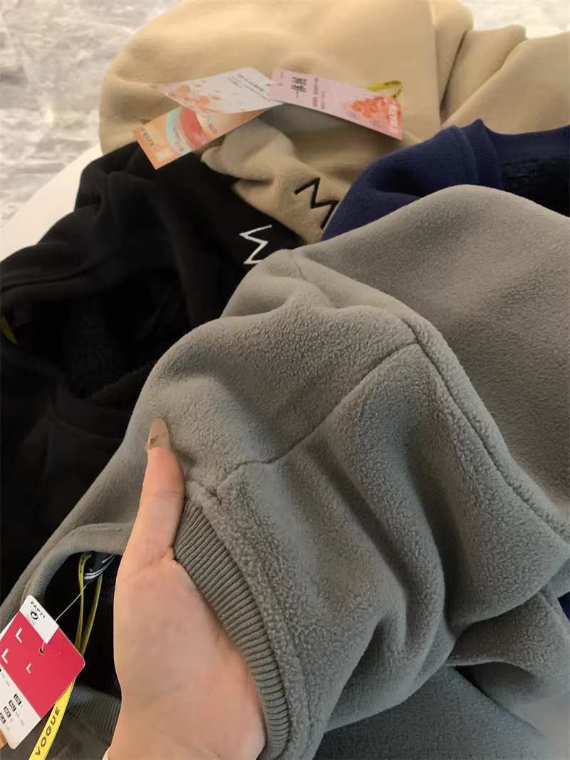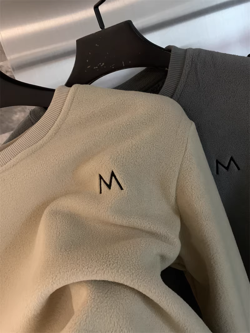 Don Quixote là một sản phẩm được đánh giá cao! Áo len nam mùa đông có lớp lót lông cừu dày dặn, kiểu dáng đơn giản, màu trơn, cổ tròn thêu họa tiết.