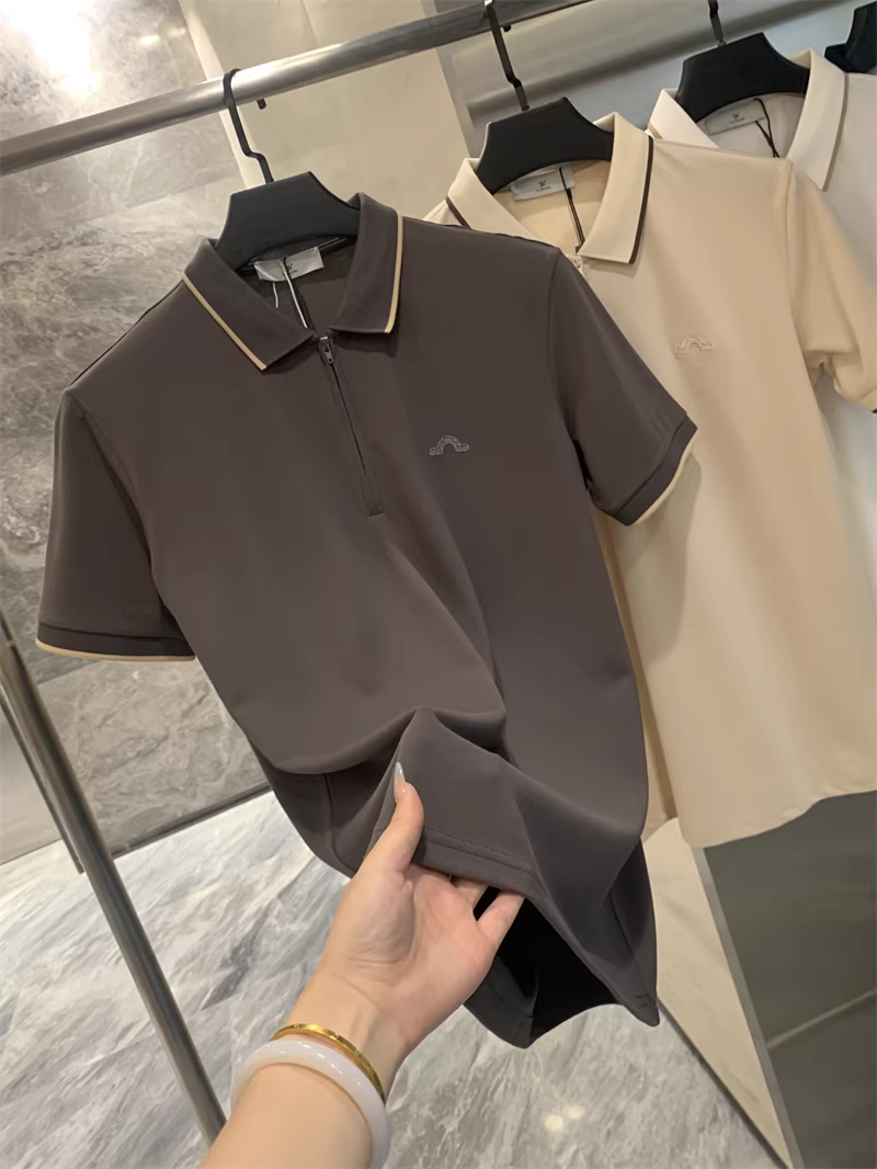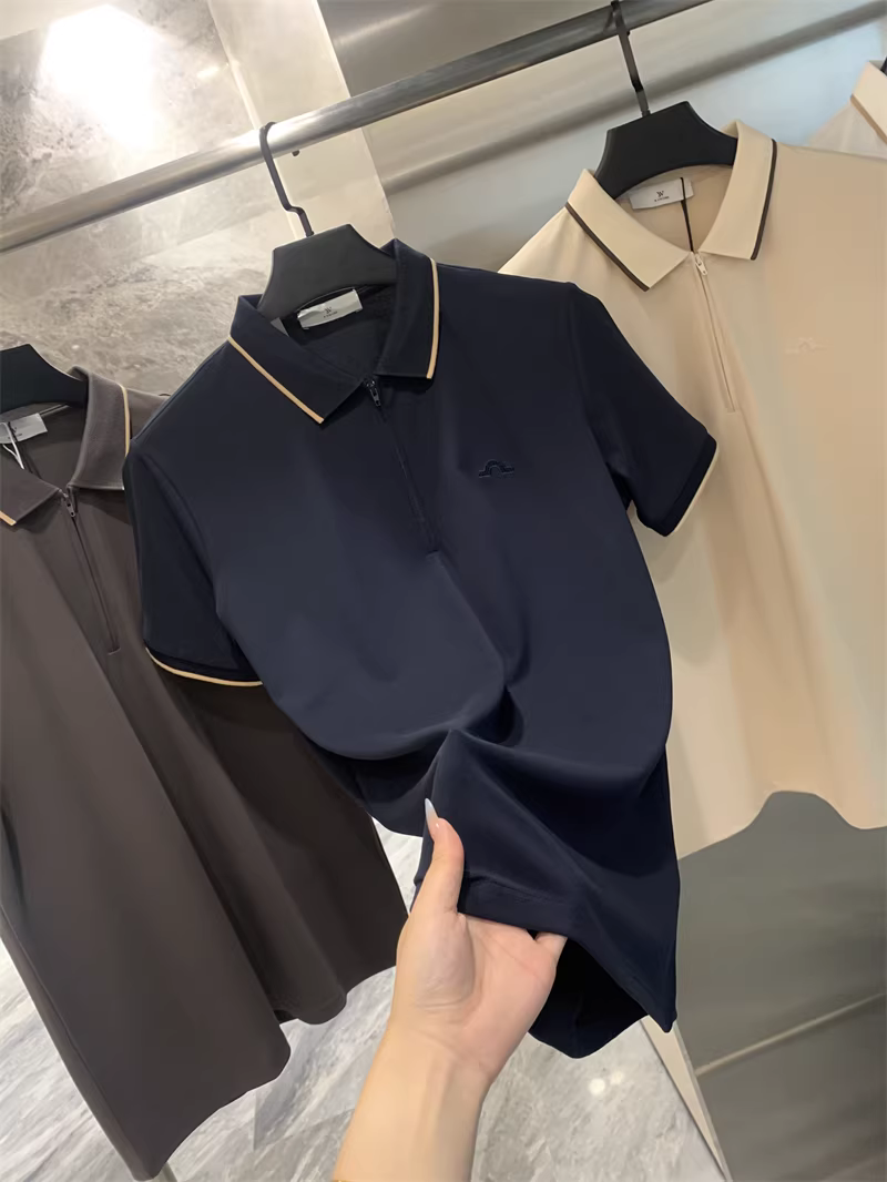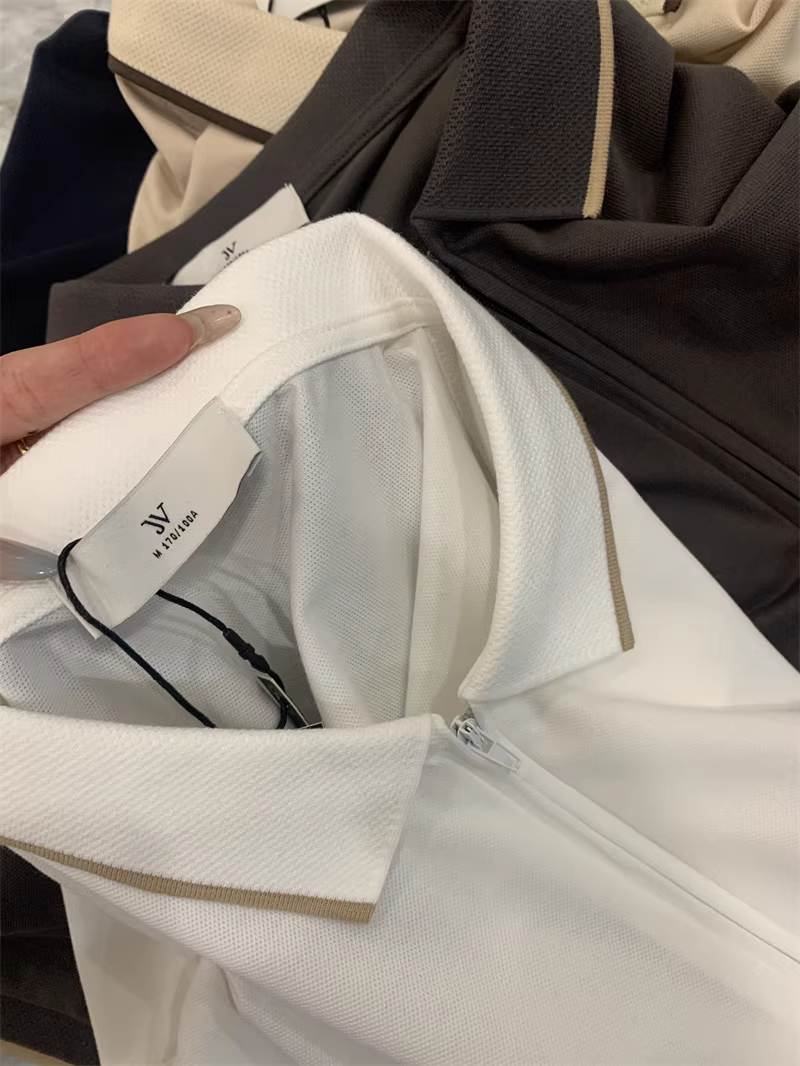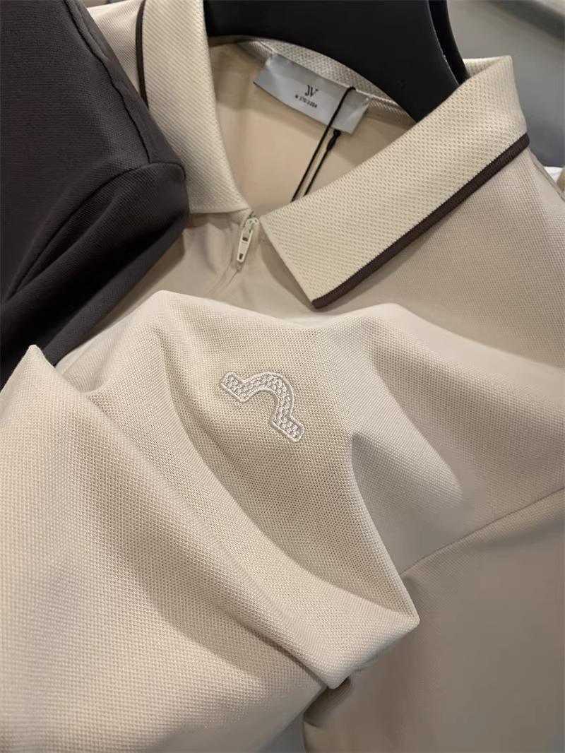 Don Quixote là một sản phẩm được đánh giá cao! Thiết kế cổ áo phối màu! Áo POLO ngắn tay, màu trơn, thêu, thoáng khí, khóa kéo nửa thân.