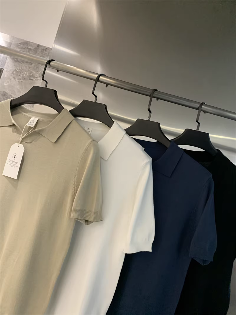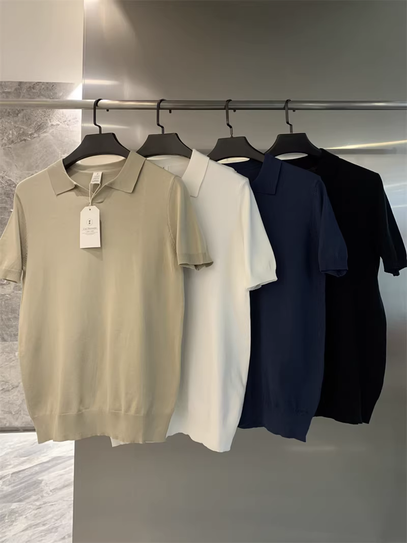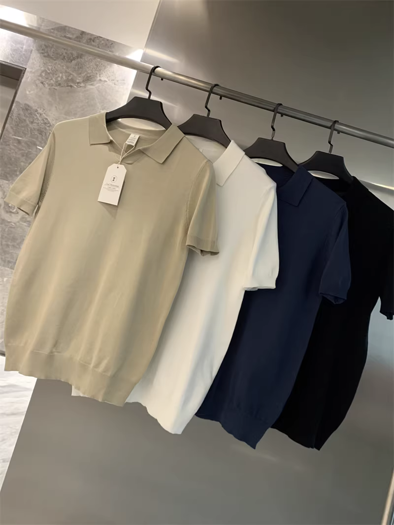 Don Quixote là sự kết hợp giữa phong cách Ý và sự sang trọng nhẹ nhàng! Áo thun nam dệt kim cao cấp, cổ trụ, tay ngắn, kiểu dáng thời trang mùa xuân hè.