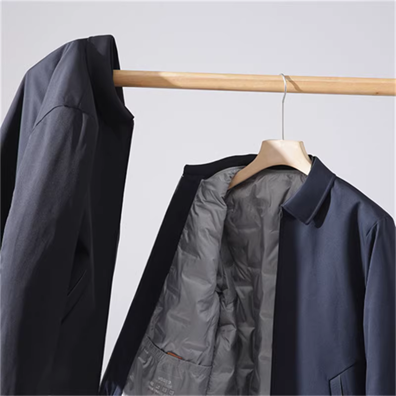 - Don Quixote Light Business! Áo khoác lông vũ nam màu trơn ấm áp có cổ, chất liệu lông vịt, mùa thu đông.