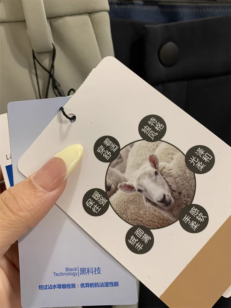 复合底层:93.4%聚酯纤维+2.9%氨纶+2.7%粘纤+1%绵羊毛(含微量其他纤维)