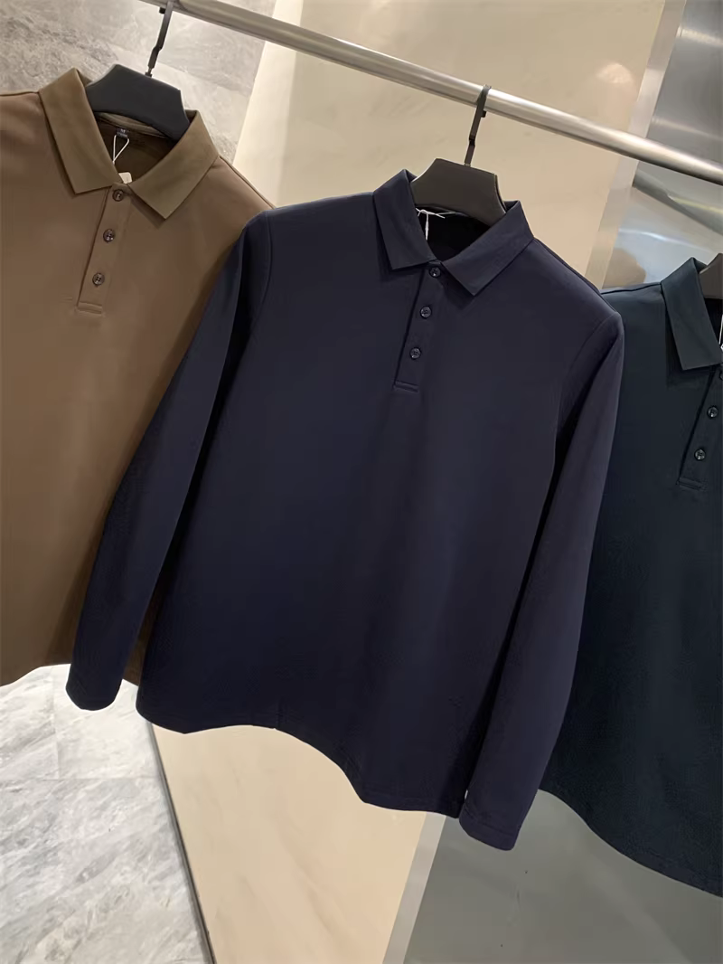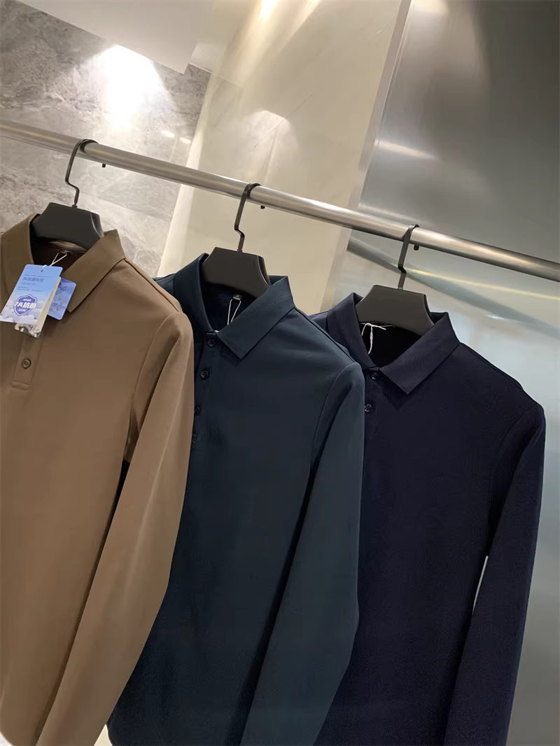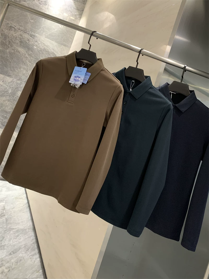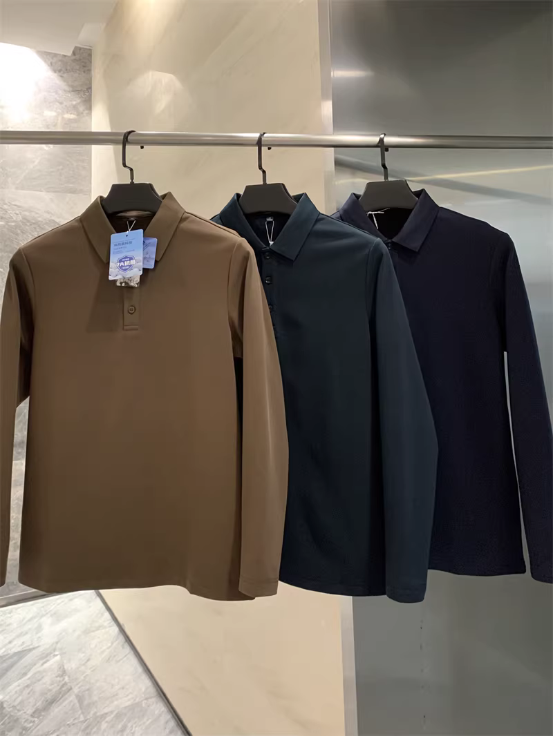 - Don Quixote Light Luxury Series! Chất liệu pha lụa! Áo Polo tay dài cổ trụ màu trơn mùa thu phong cách doanh nhân lịch lãm