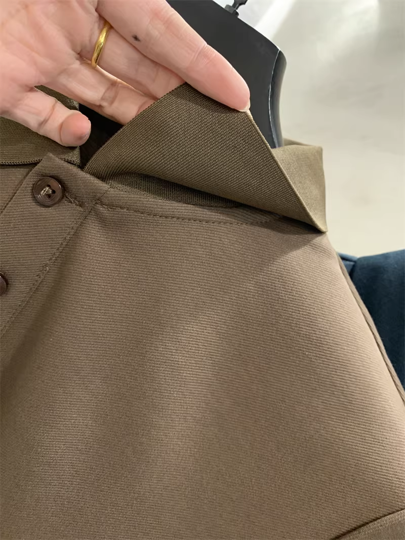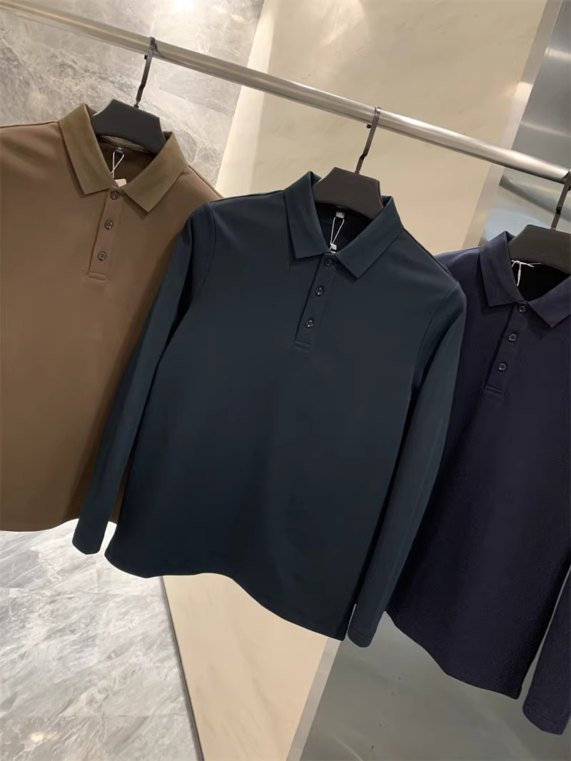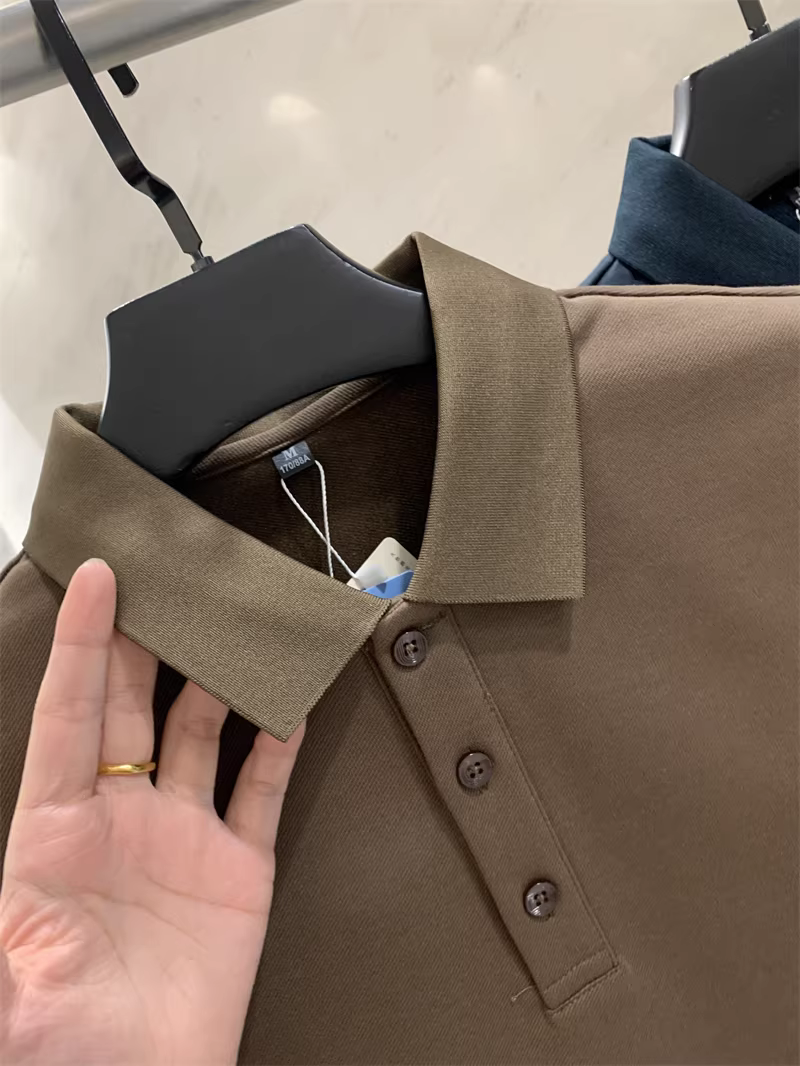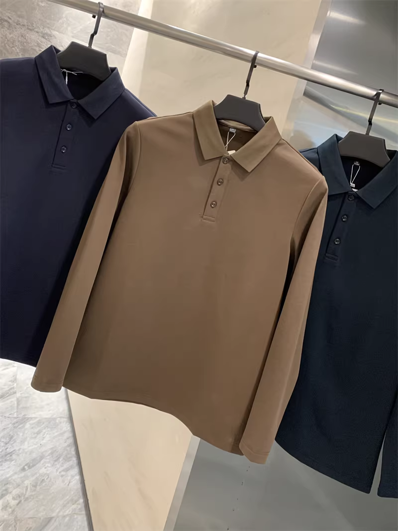 - Don Quixote Light Luxury Series! Chất liệu pha lụa! Áo Polo tay dài cổ trụ màu trơn mùa thu phong cách doanh nhân lịch lãm