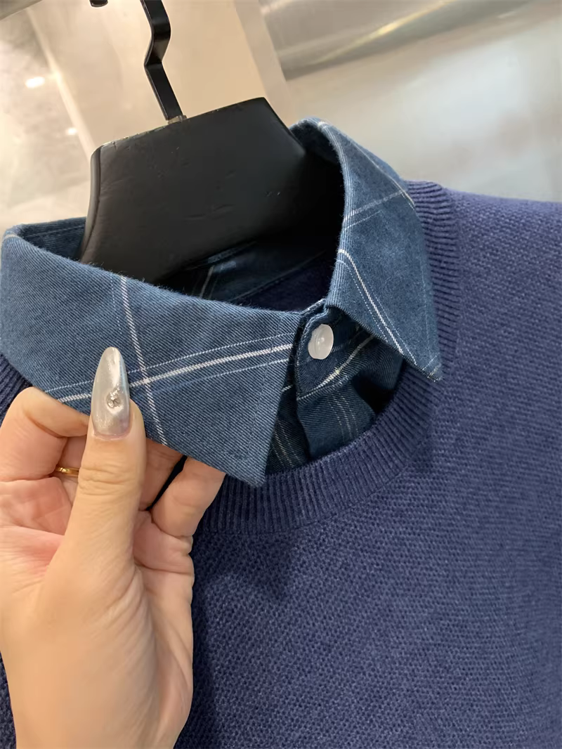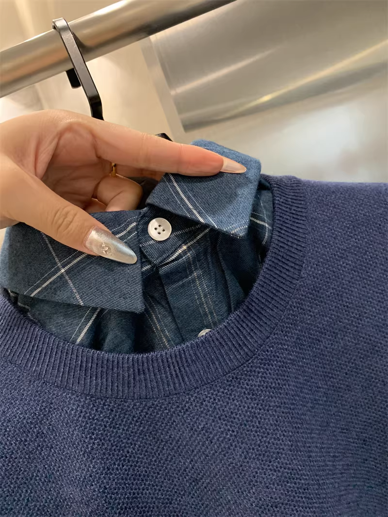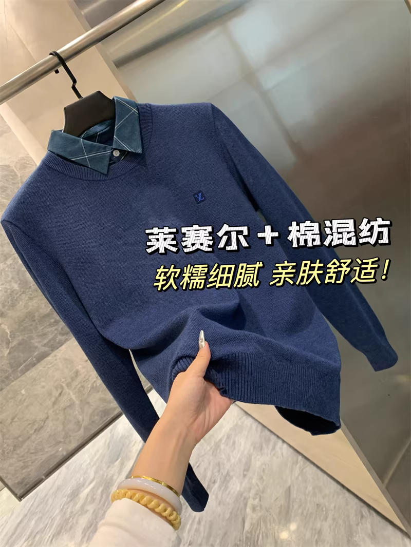 Don Quixote, Lujia Chuyuan! Chất liệu pha Lyocell! Áo len dệt kim giả hai mảnh cổ sơ mi nam.