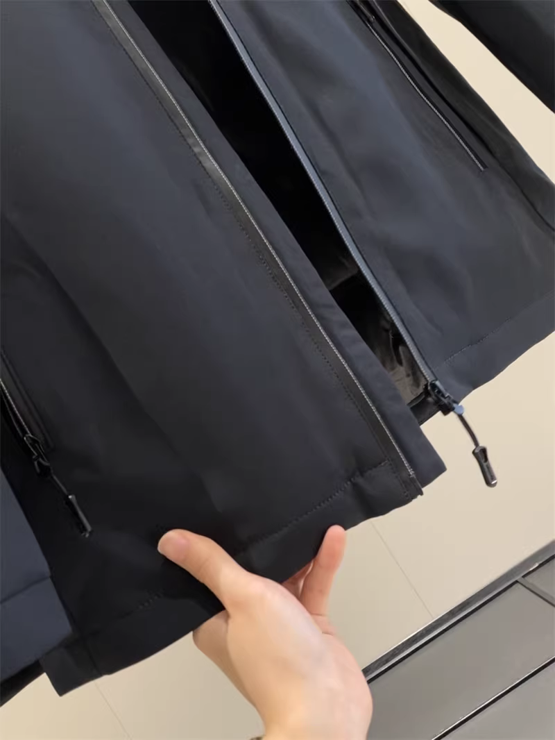 备注:连帽可拆卸(拉链调节)、抽绳可调节;门襟拉链可调节;内里两个真口袋;外面两个真口袋(拉链调节);袖口按扣可调节。