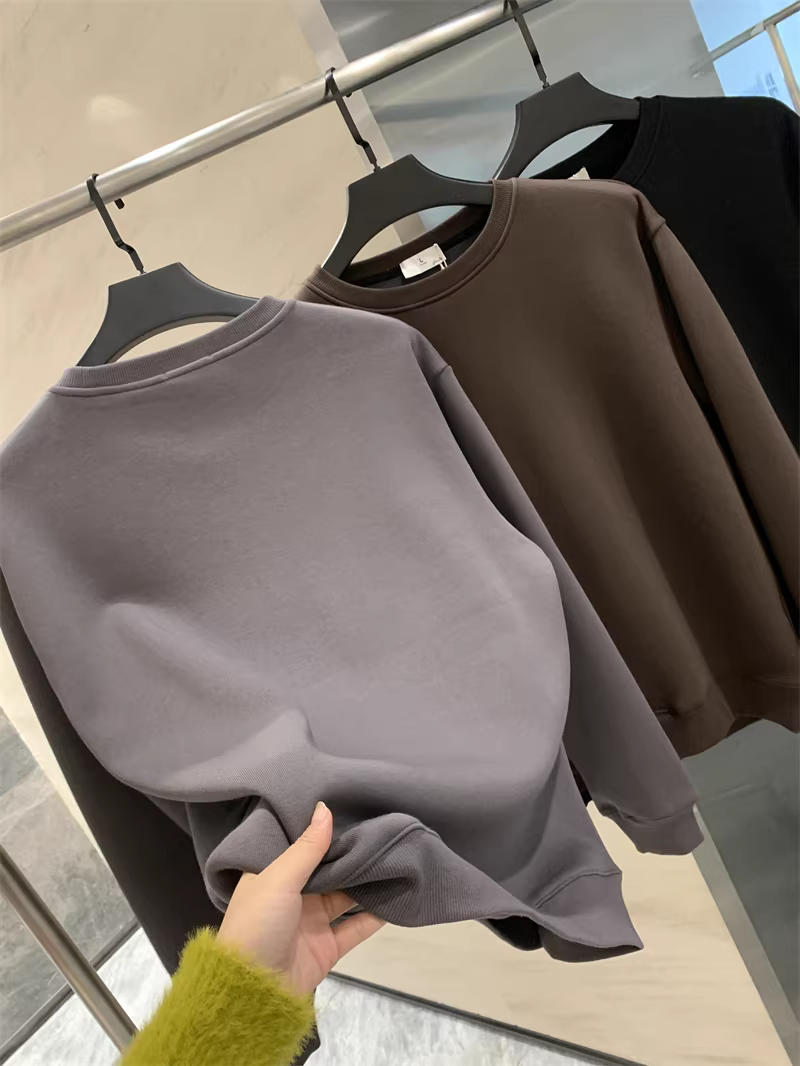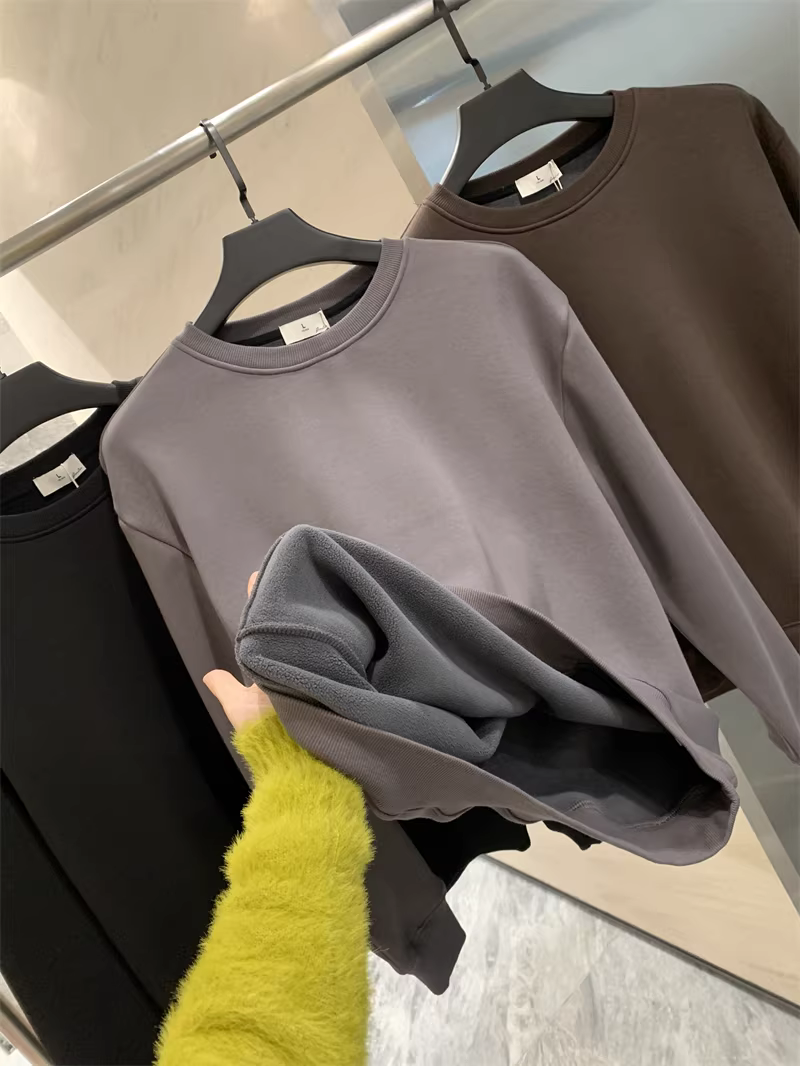 Don Quixote, luôn ấm áp và thoải mái! Áo len cổ tròn lót lông cừu màu trơn đơn giản, ấm áp, thích hợp cho mùa thu và mùa đông.