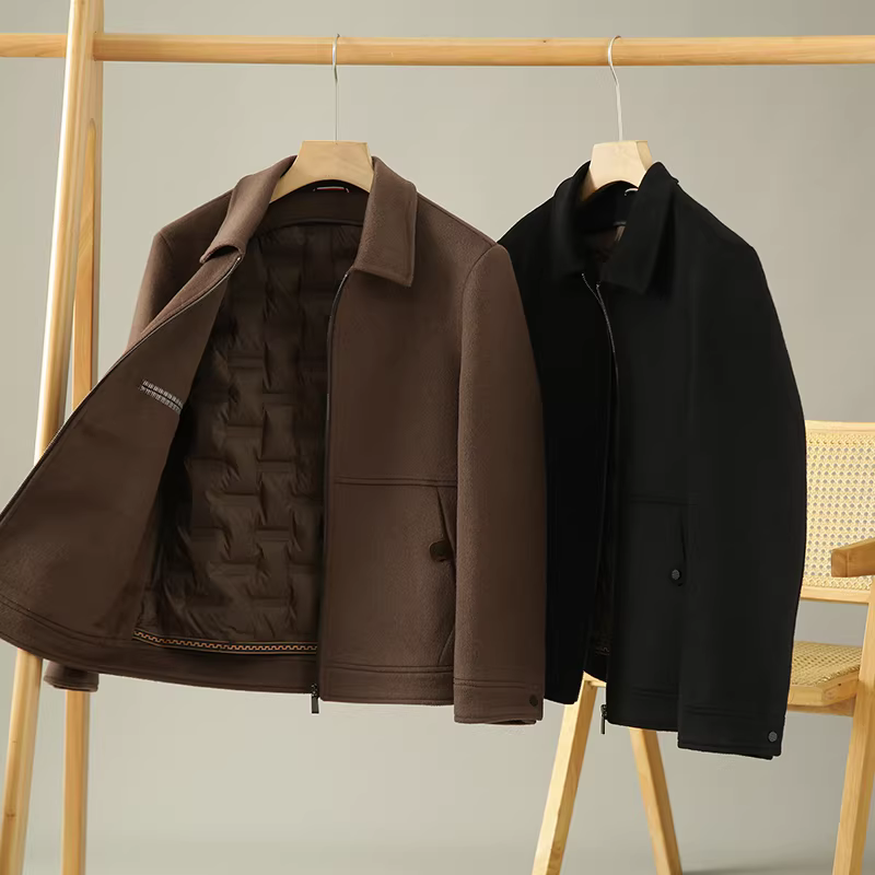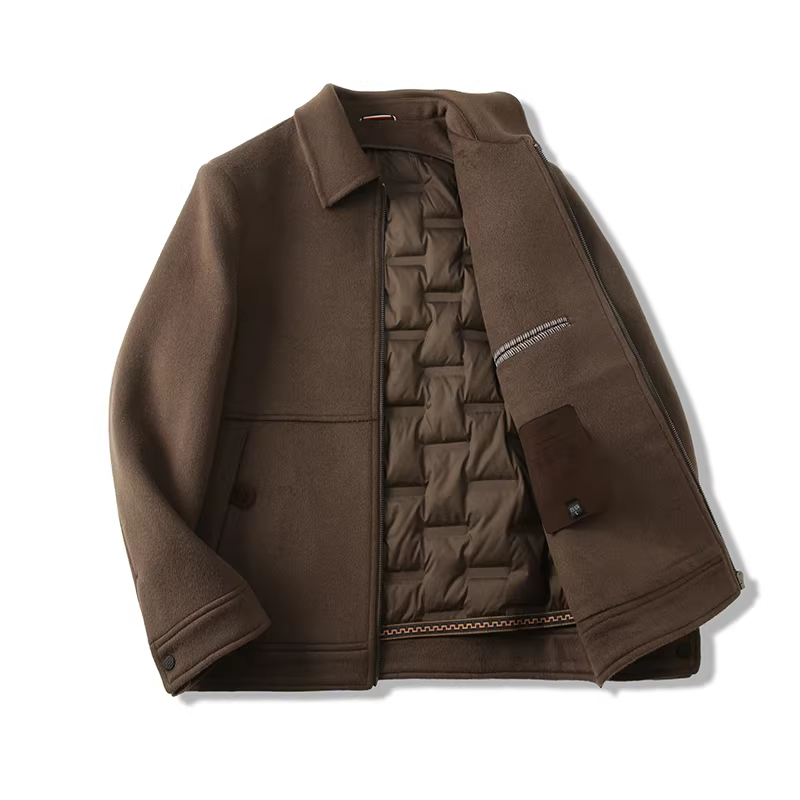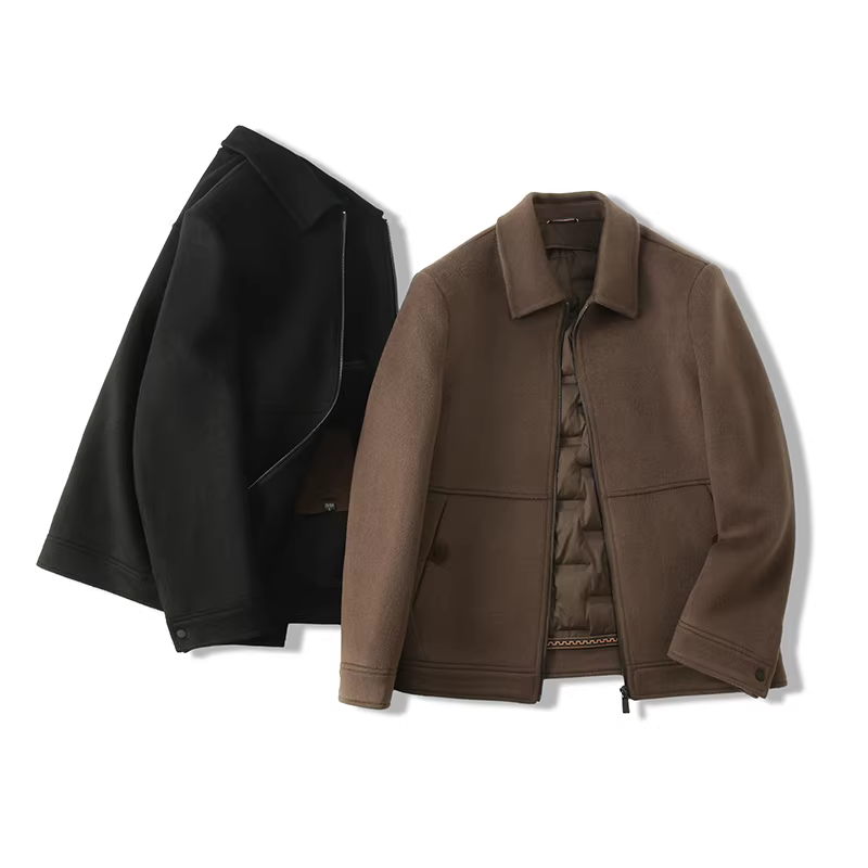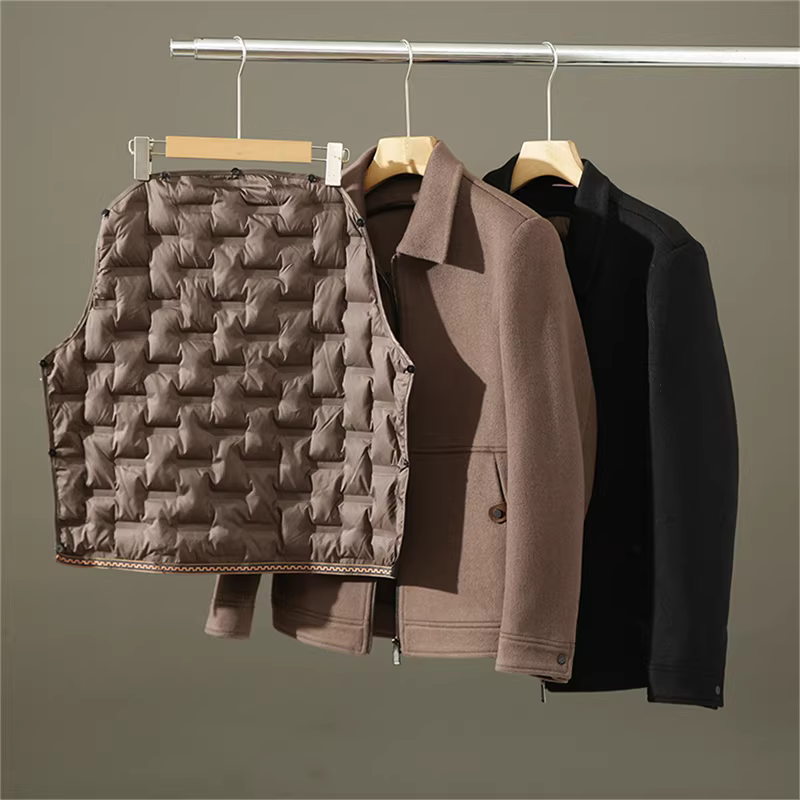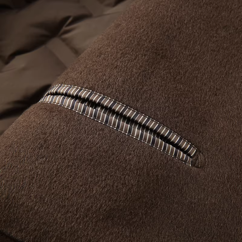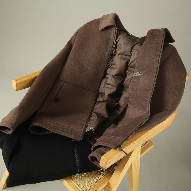 Don Quixote Luxury! 70,6% len cừu nhập khẩu! Lót lông ngỗng có thể tháo rời! Áo khoác len nam