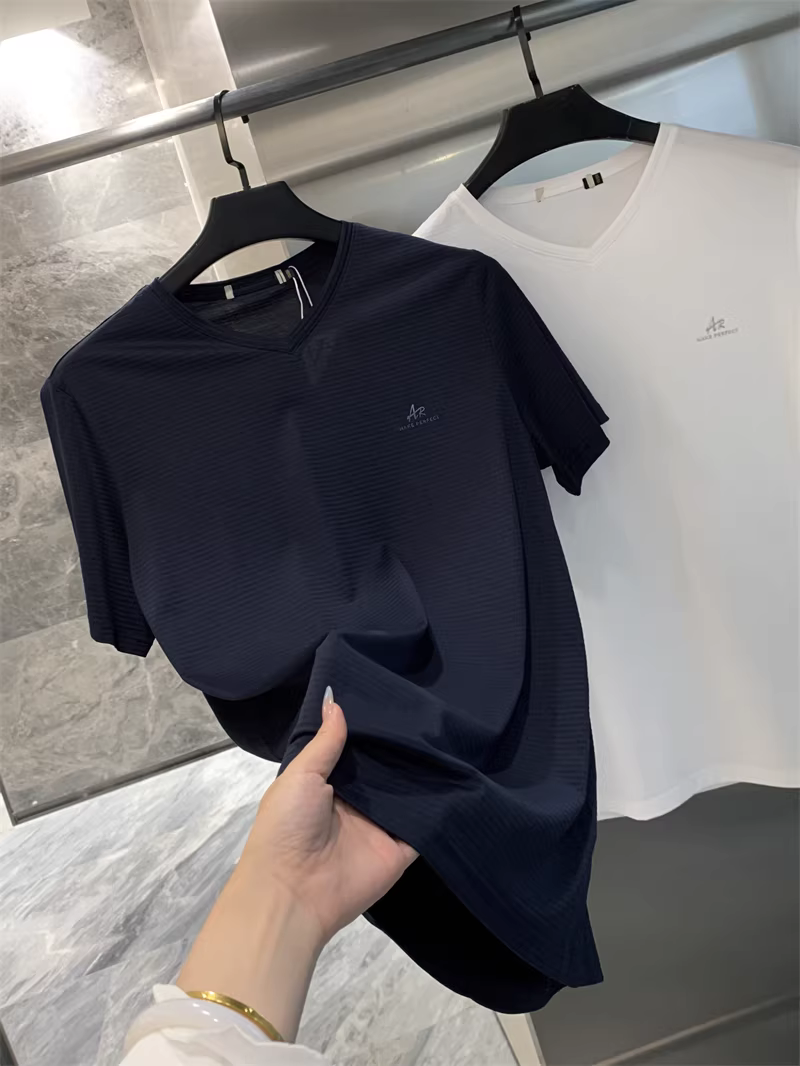 Don Quixote Lyocell cotton được xử lý mercerized! Áo sơ mi nam mùa hè thoải mái và tinh tế có cổ ngọt ngào/cổ chữ V đa năng, tay ngắn hợp thời trang