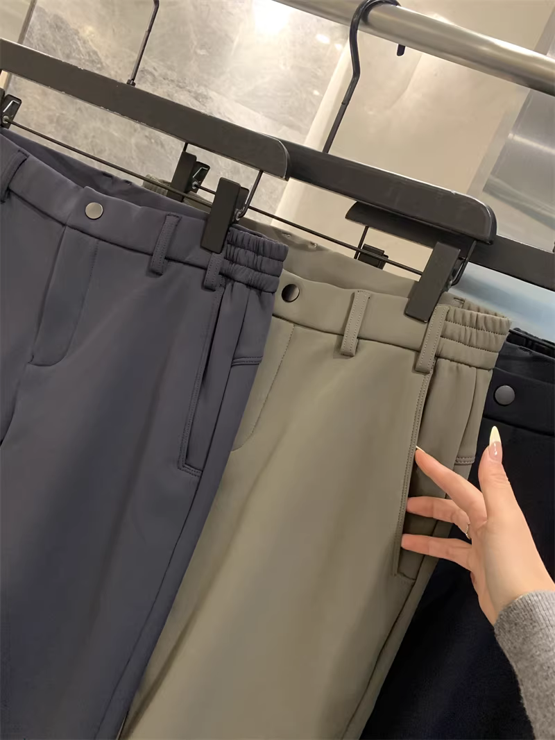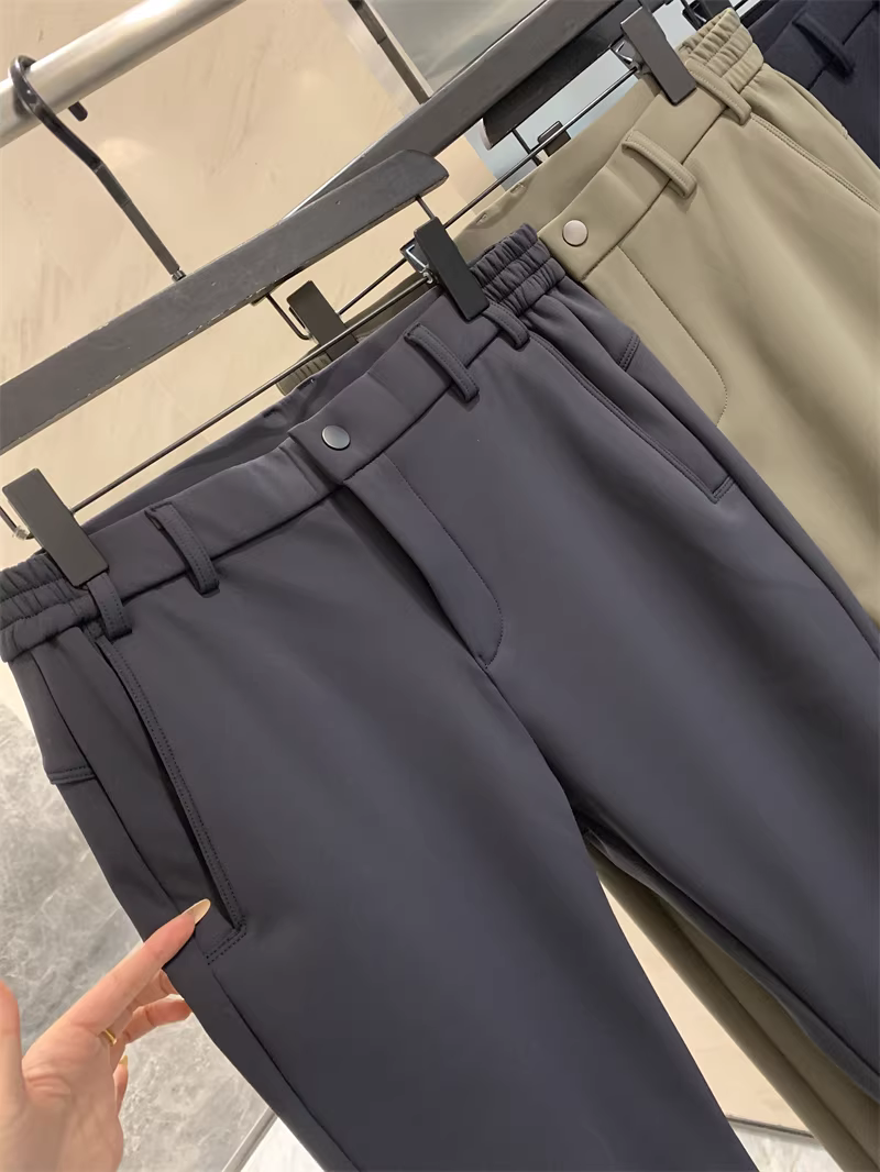 Don Quixote mang phong cách kinh doanh giản dị! Lớp lót lông cừu tích hợp và được làm dày! Quần âu ống đứng màu trơn ấm áp mùa thu đông dành cho nam.