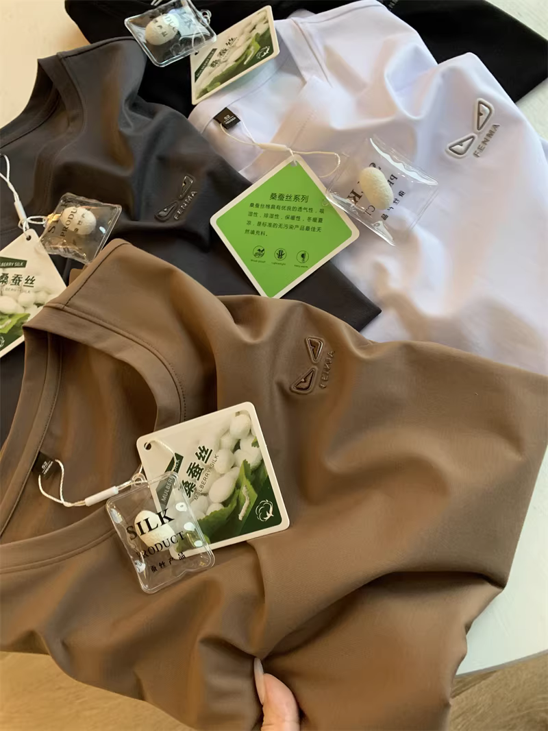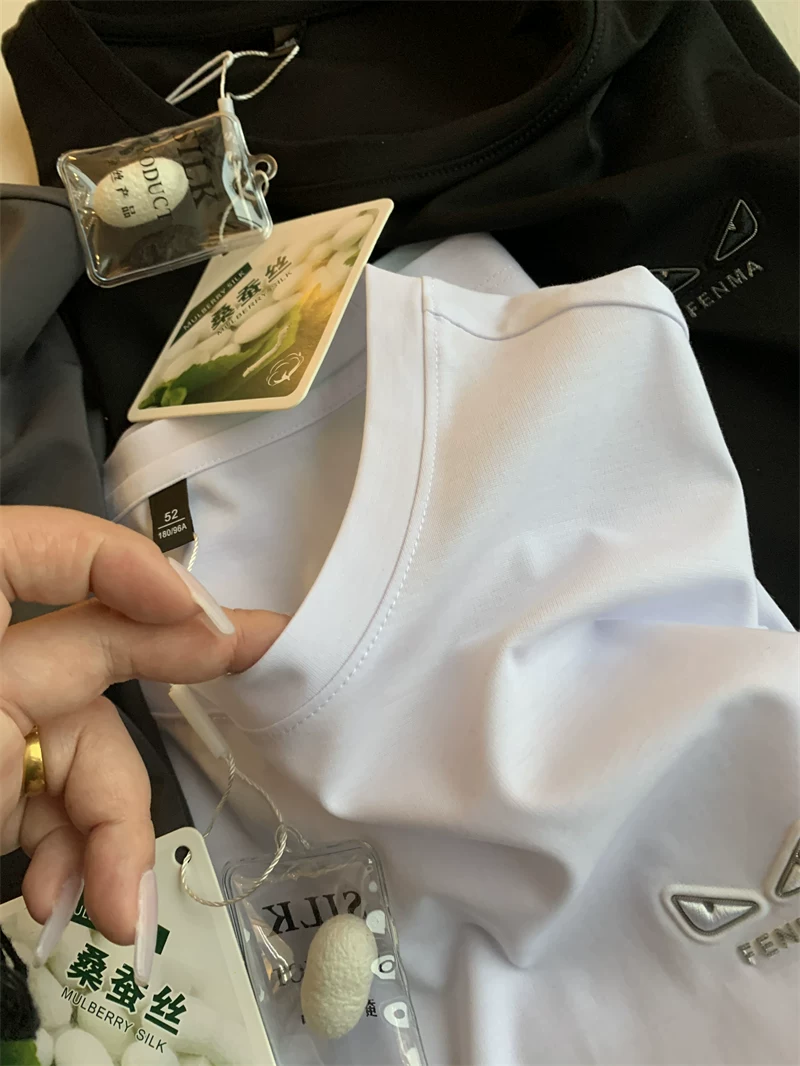 - Don Quixote Mắt Ác! Tơ tằm dâu tằm + Lyocell! Áo thun ngắn tay cổ tròn đa năng, thời trang dành cho cặp đôi