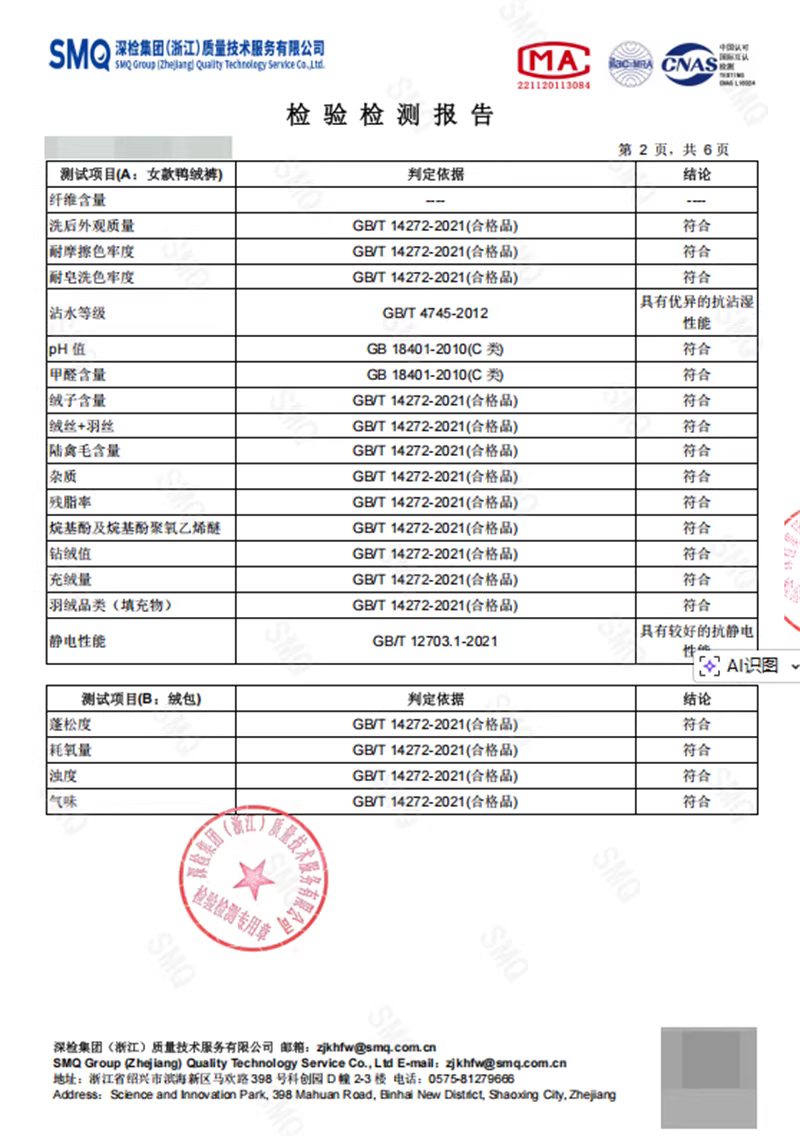 | L | 腰围73 | 臀围106 | 脚口围57.2 | 裤长104 | 充绒量26 |