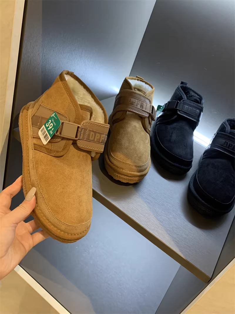 - Don Quixote, miền Bắc không có áp lực gì! Giày bốt ngắn cổ trung cao giữ ấm mùa thu đông dành cho nam, lót lông cừu và dày dặn, có khóa cài, kiểu giày đi tuyết.