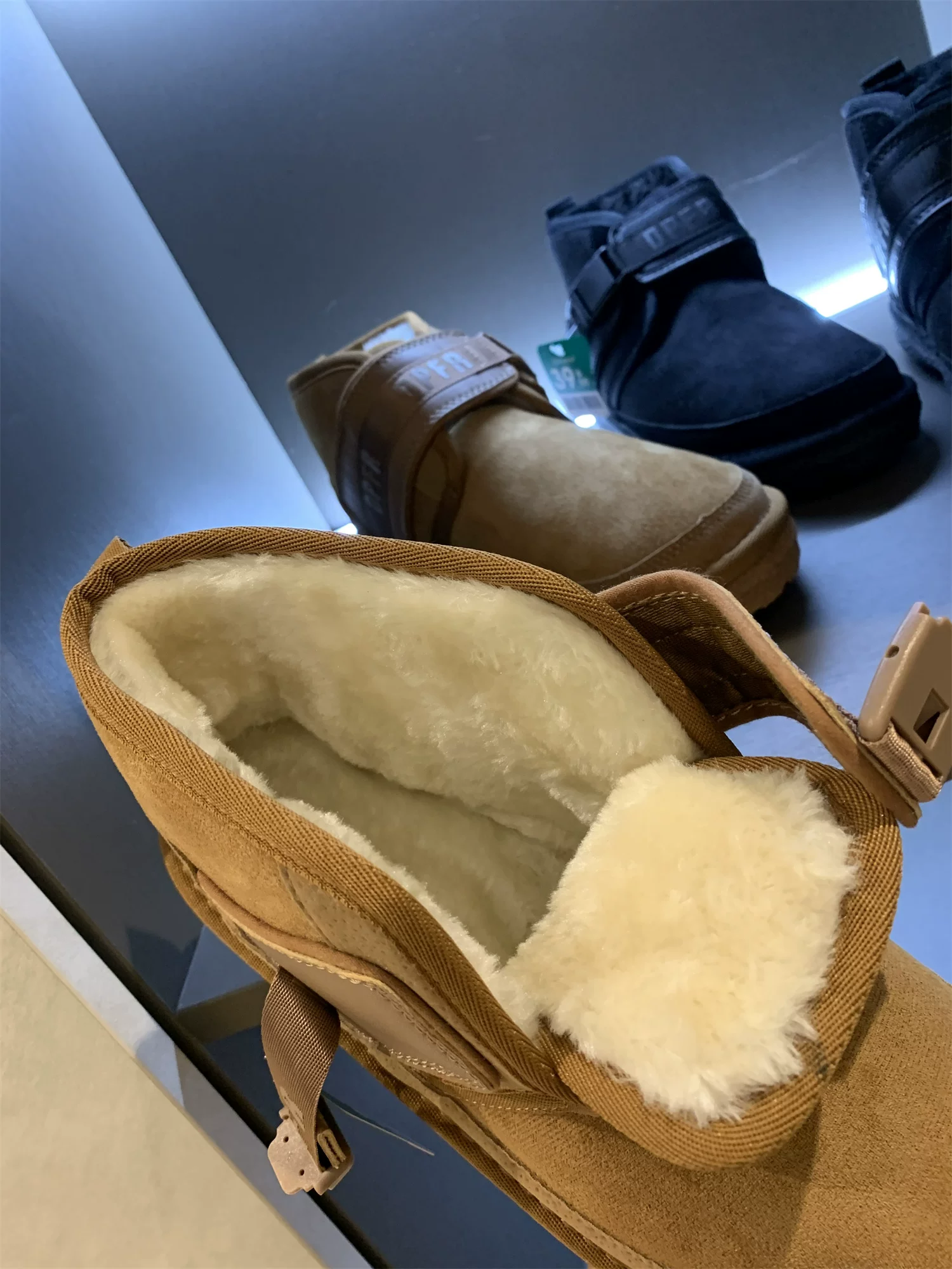 Don Quixote, miền Bắc không có áp lực gì! Giày bốt ngắn cổ trung cao giữ ấm mùa thu đông dành cho nam, lót lông cừu và dày dặn, có khóa cài, kiểu giày đi tuyết.