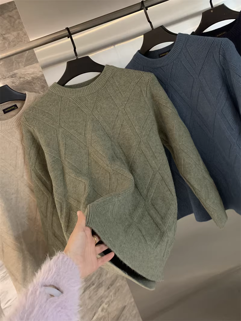 - Don Quixote Modal Blend! Họa tiết dây cáp được đan bằng tay! Áo len dệt kim dày thường ngày mùa thu đông dành cho nam giới.