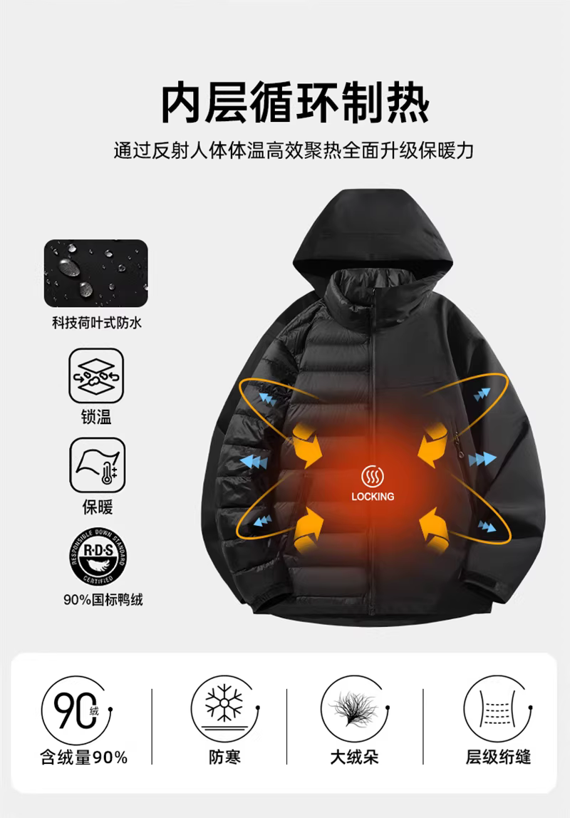 Don Quixote, một chiếc áo khoác có thể mặc được ba kiểu! Áo khoác có mũ + độn 90% lông vịt! Áo khoác có mũ mùa thu đông dành cho nam.