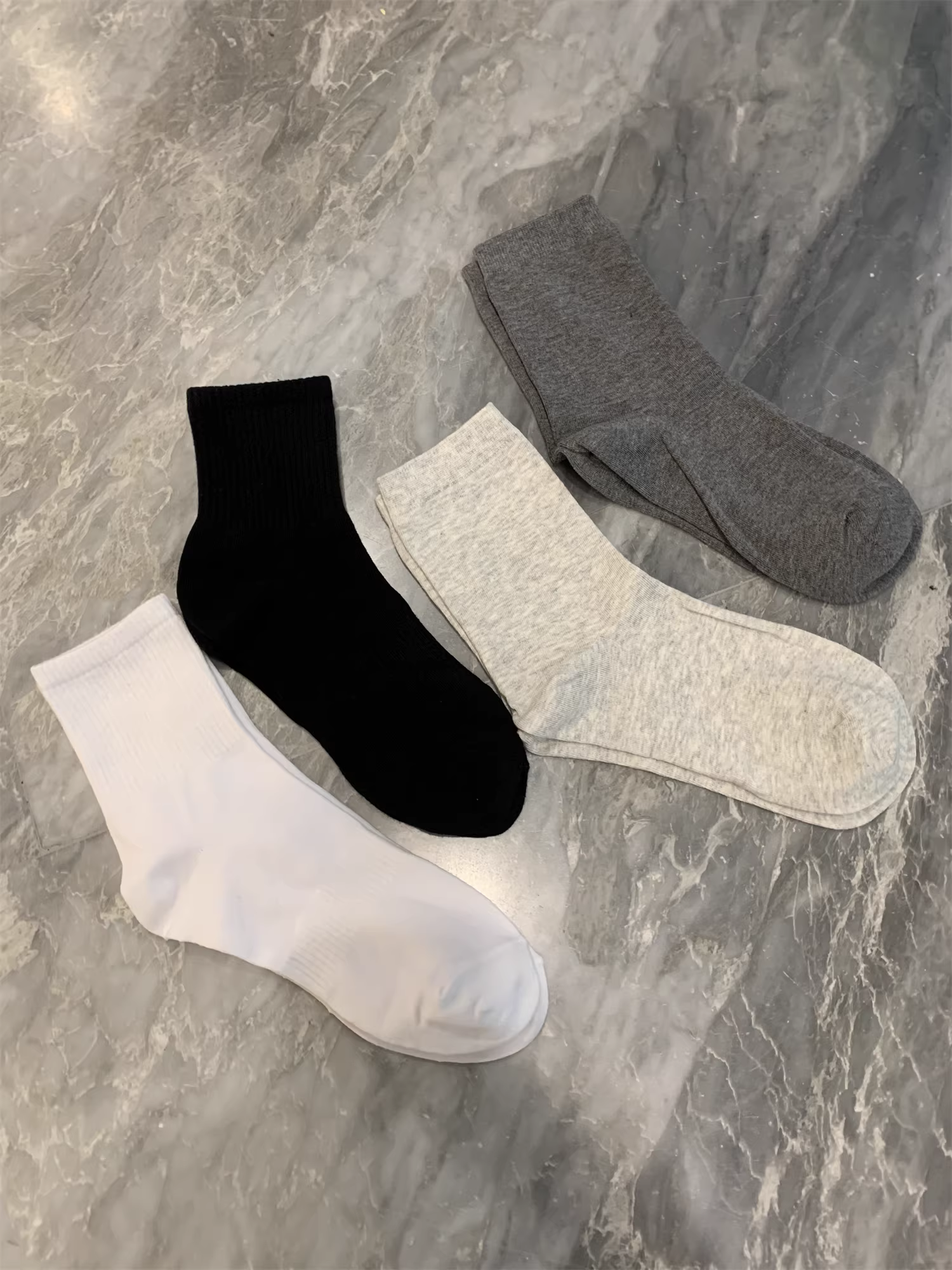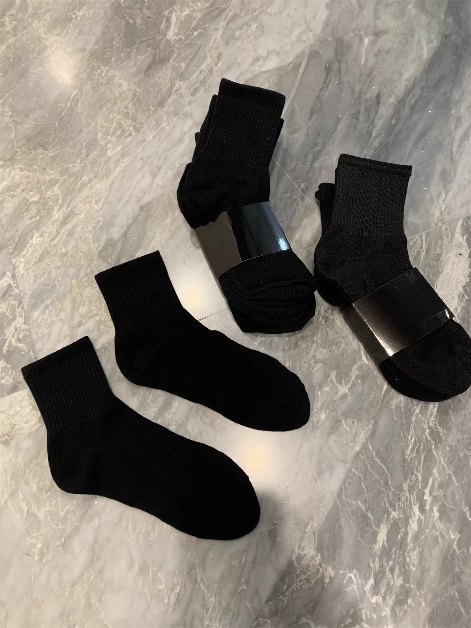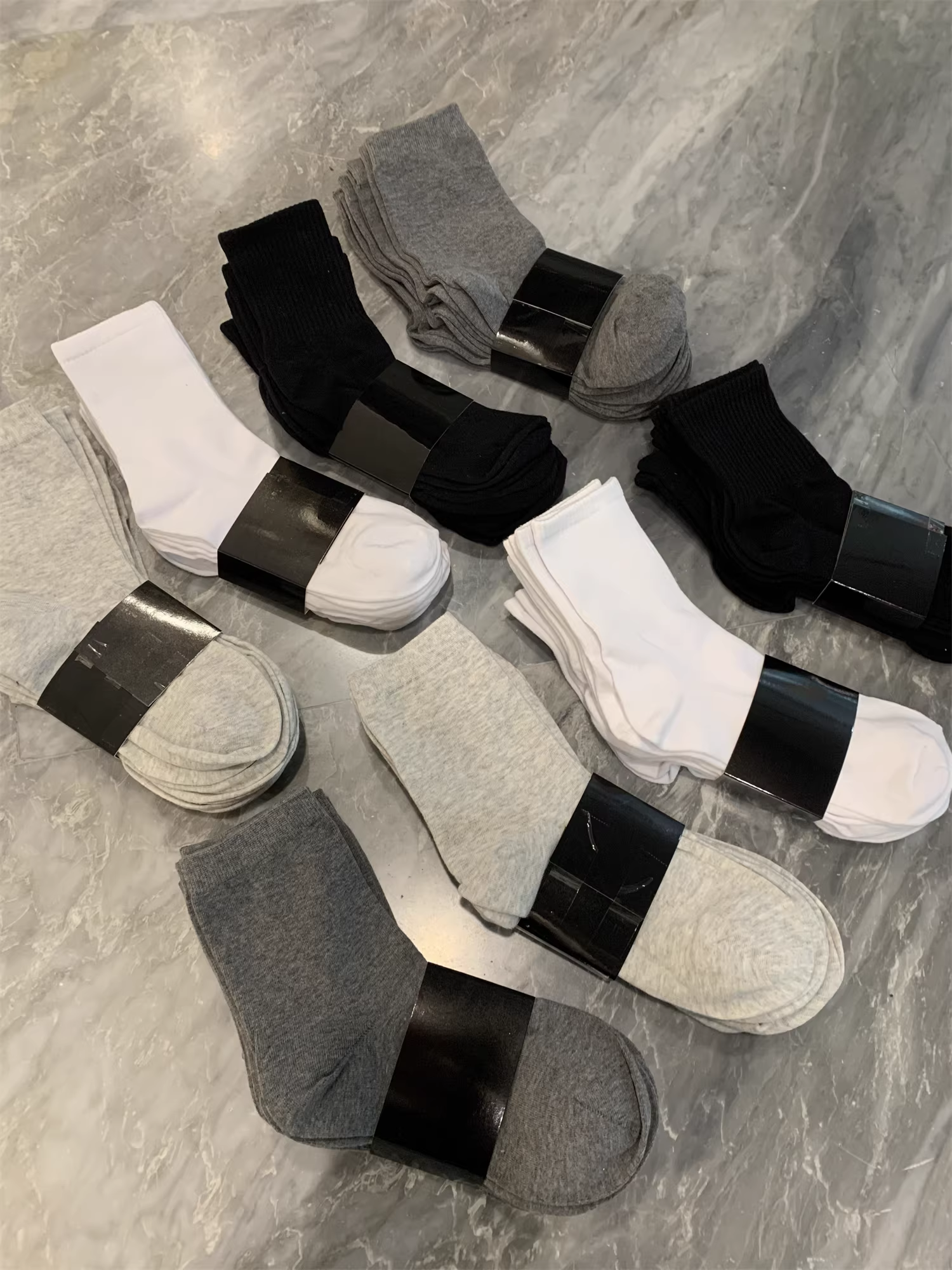 Don Quixote, một gói gồm năm đôi! Tất cotton pha, thấm hút mồ hôi, thoáng khí, màu trơn, tất cơ bản đa năng dài đến giữa bắp chân dành cho nam.