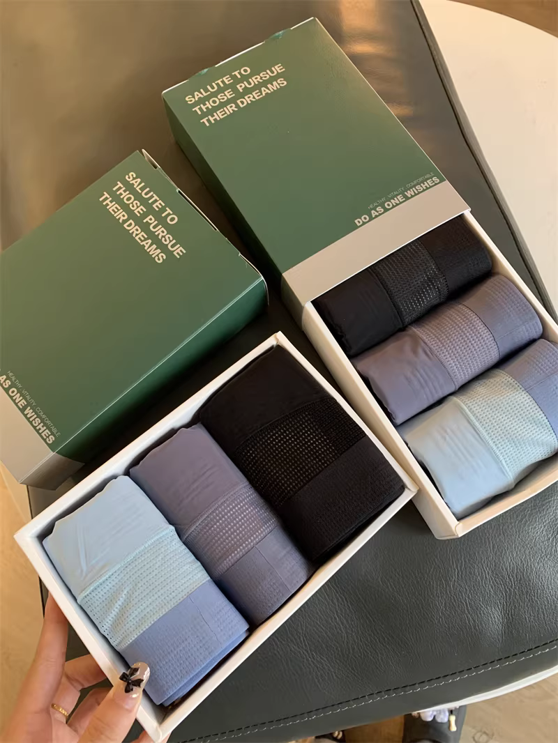 - Don Quixote, một hộp gồm ba đôi! Chất liệu lụa pha! Quần lót nam thoáng mát, liền mạch, co giãn.