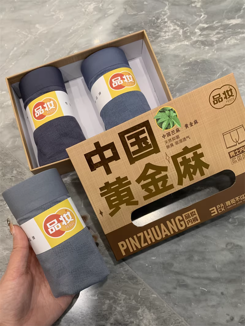 Don Quixote, một hộp gồm ba đôi! Phối chất liệu Ramie + Modal! Quần lót nam thoáng mát, co giãn.
