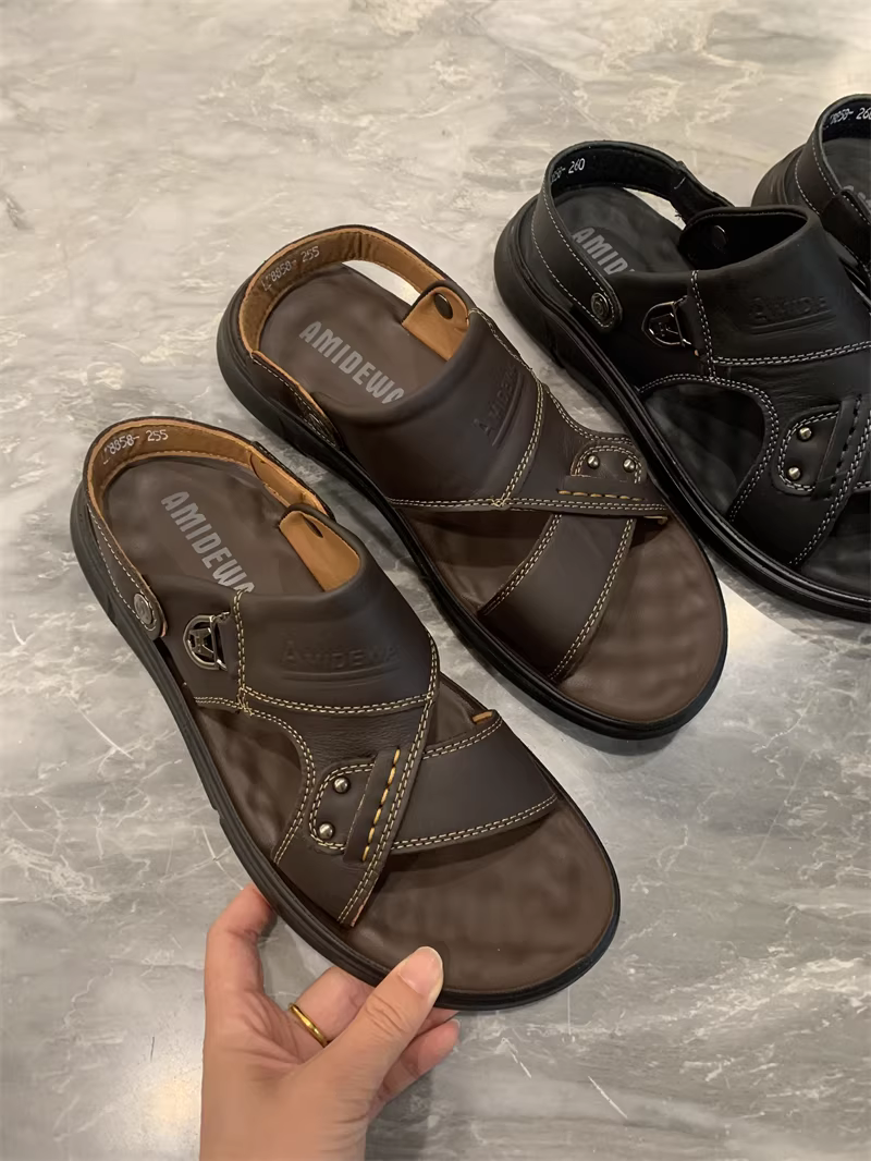 - Don Quixote, một món ngon mùa hè tuyệt vời! Có thể mang theo hai cách! Giày đi biển, dép và sandal mùa hè bằng da bò lớp đầu tiên dành cho nam.