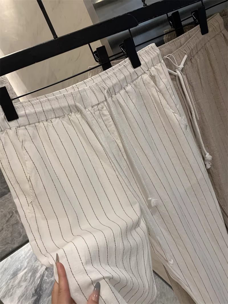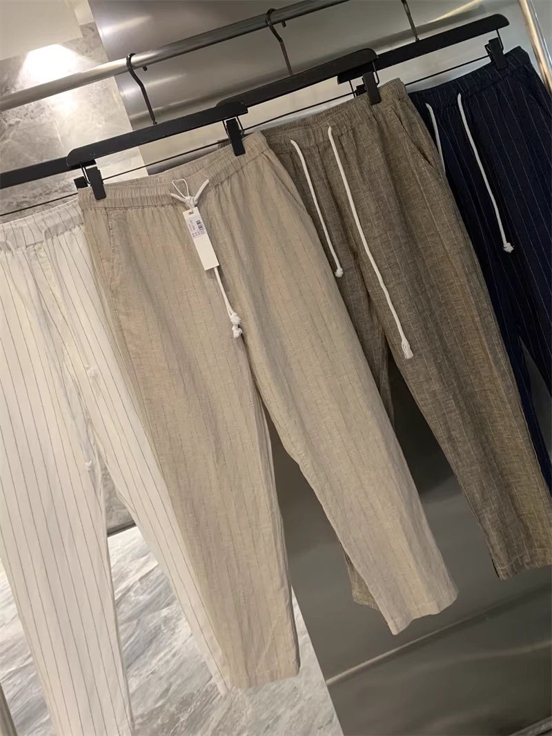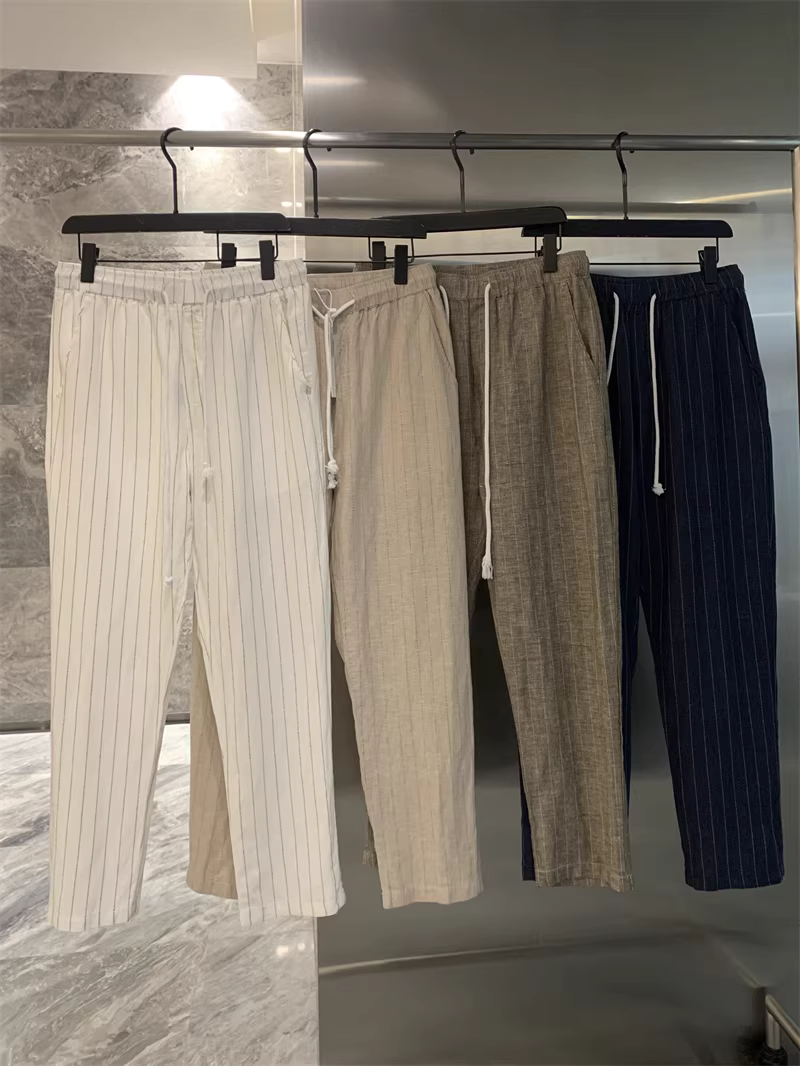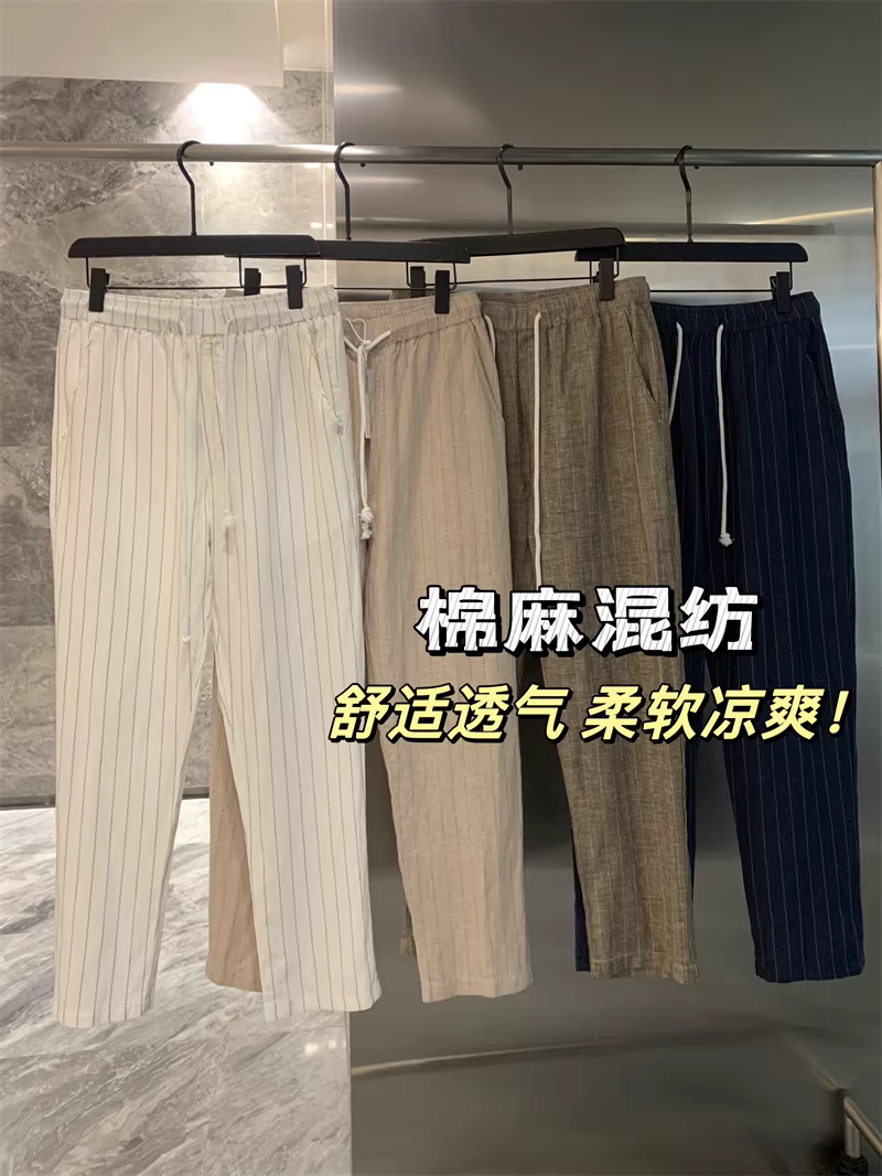Don Quixote, một mùa hè mát mẻ! Chất liệu vải lanh + cotton! Quần vải lanh sọc thoáng khí, thấm hút mồ hôi, phong cách thường ngày dành cho nam.