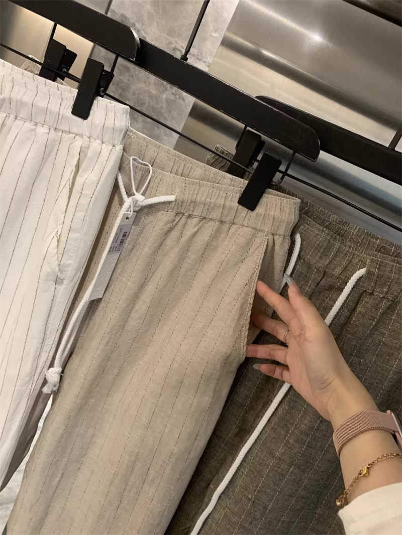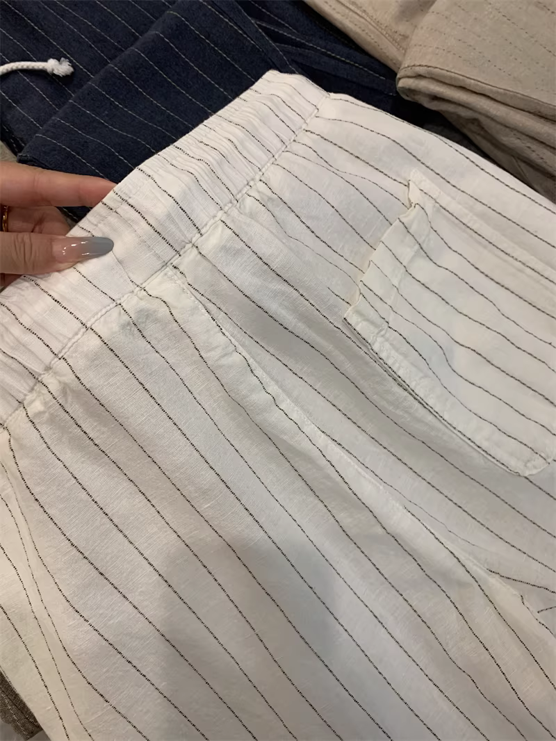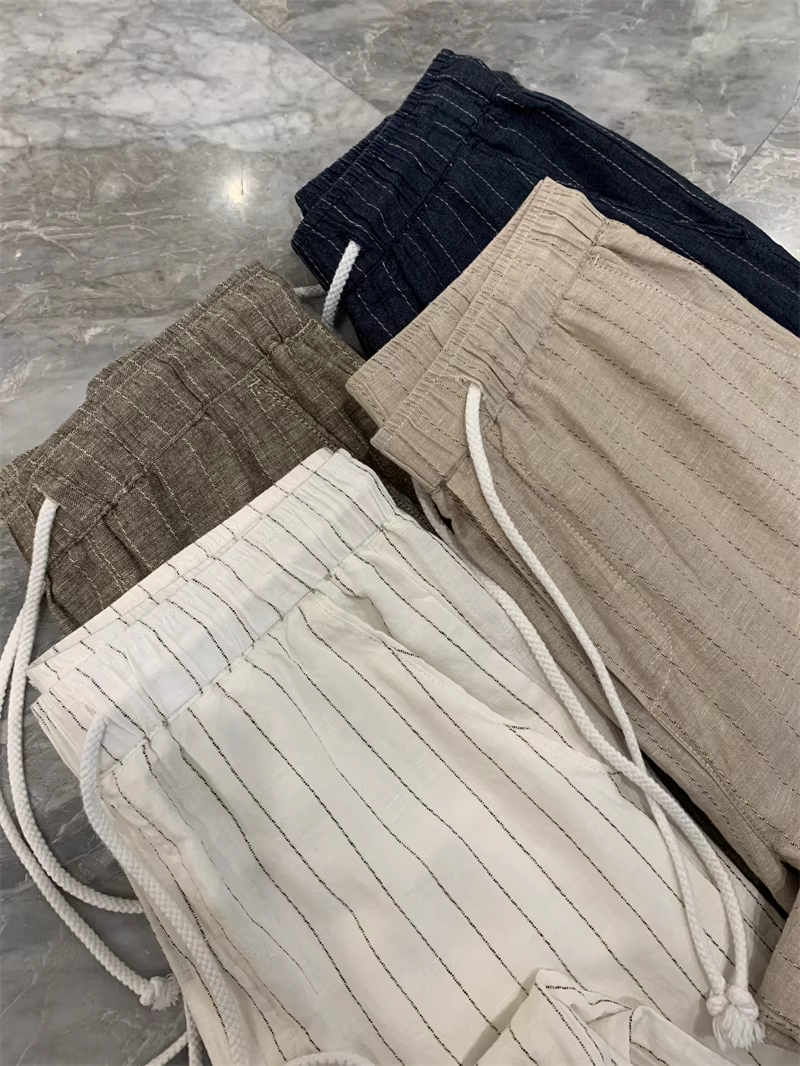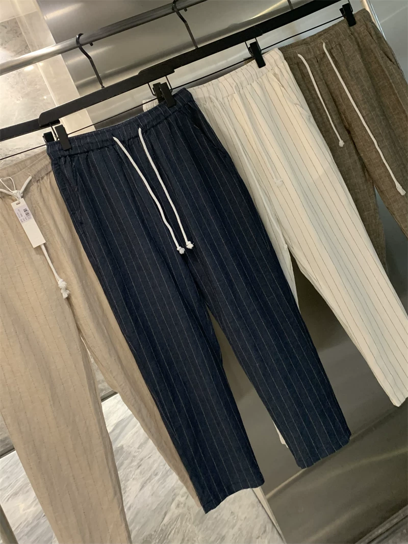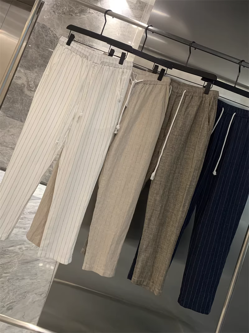 Don Quixote, một mùa hè mát mẻ! Chất liệu vải lanh + cotton! Quần vải lanh sọc thoáng khí, thấm hút mồ hôi, phong cách thường ngày dành cho nam.