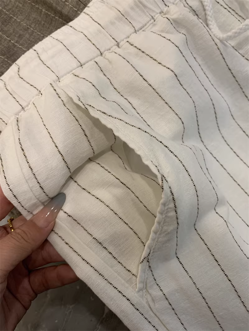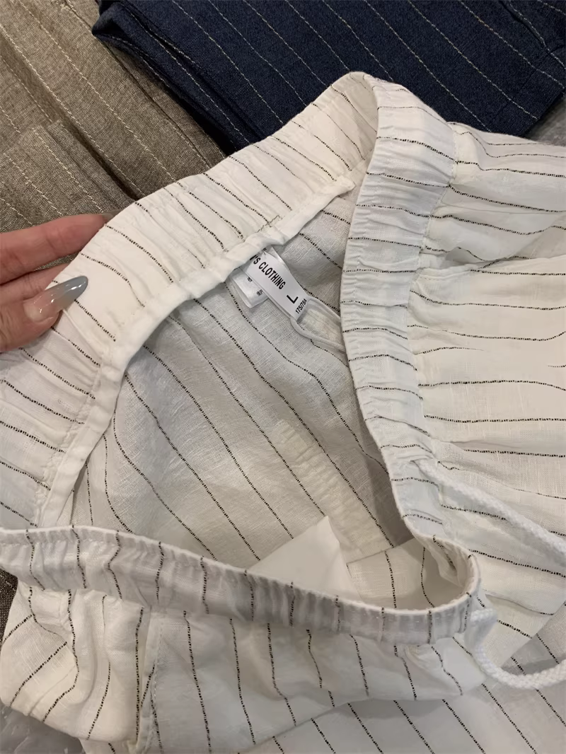 - Don Quixote, một mùa hè mát mẻ! Chất liệu vải lanh + cotton! Quần vải lanh sọc thoáng khí, thấm hút mồ hôi, phong cách thường ngày dành cho nam.