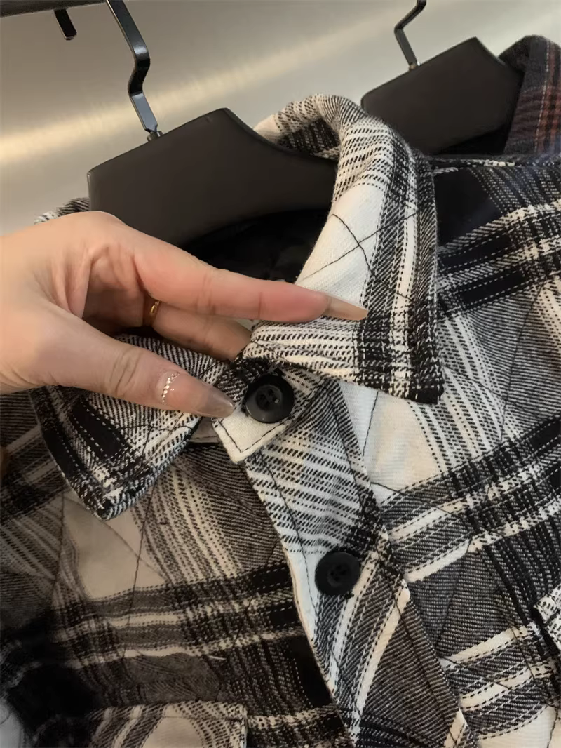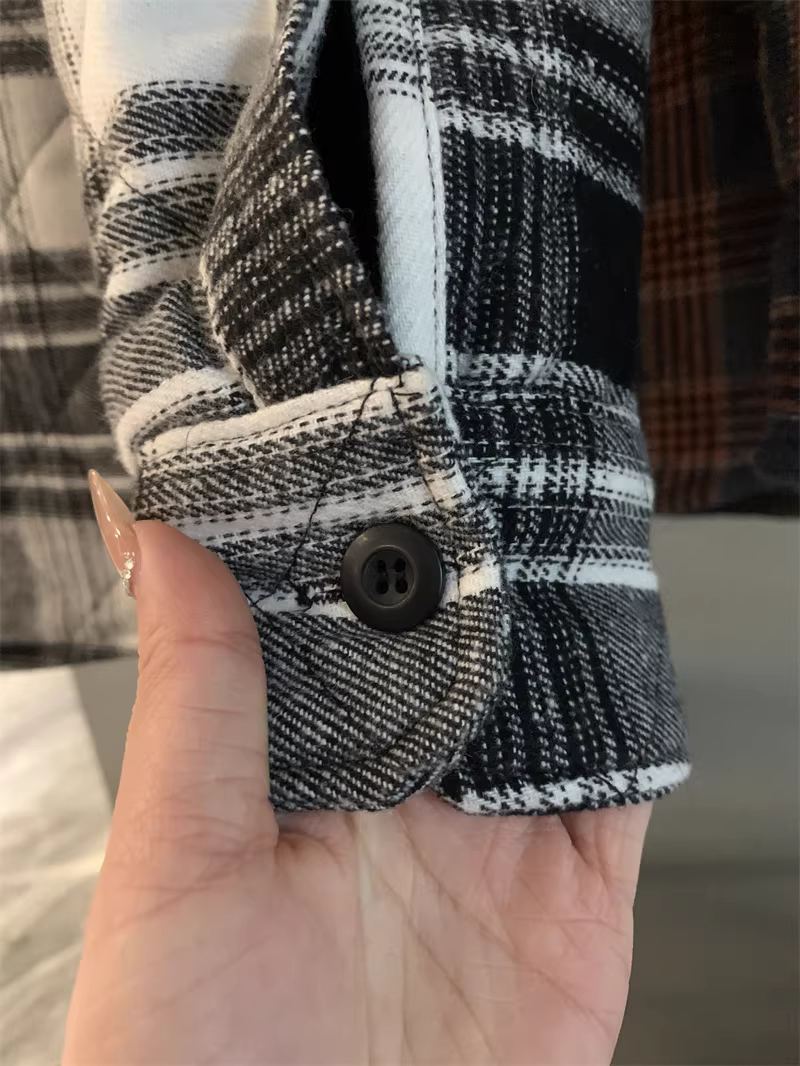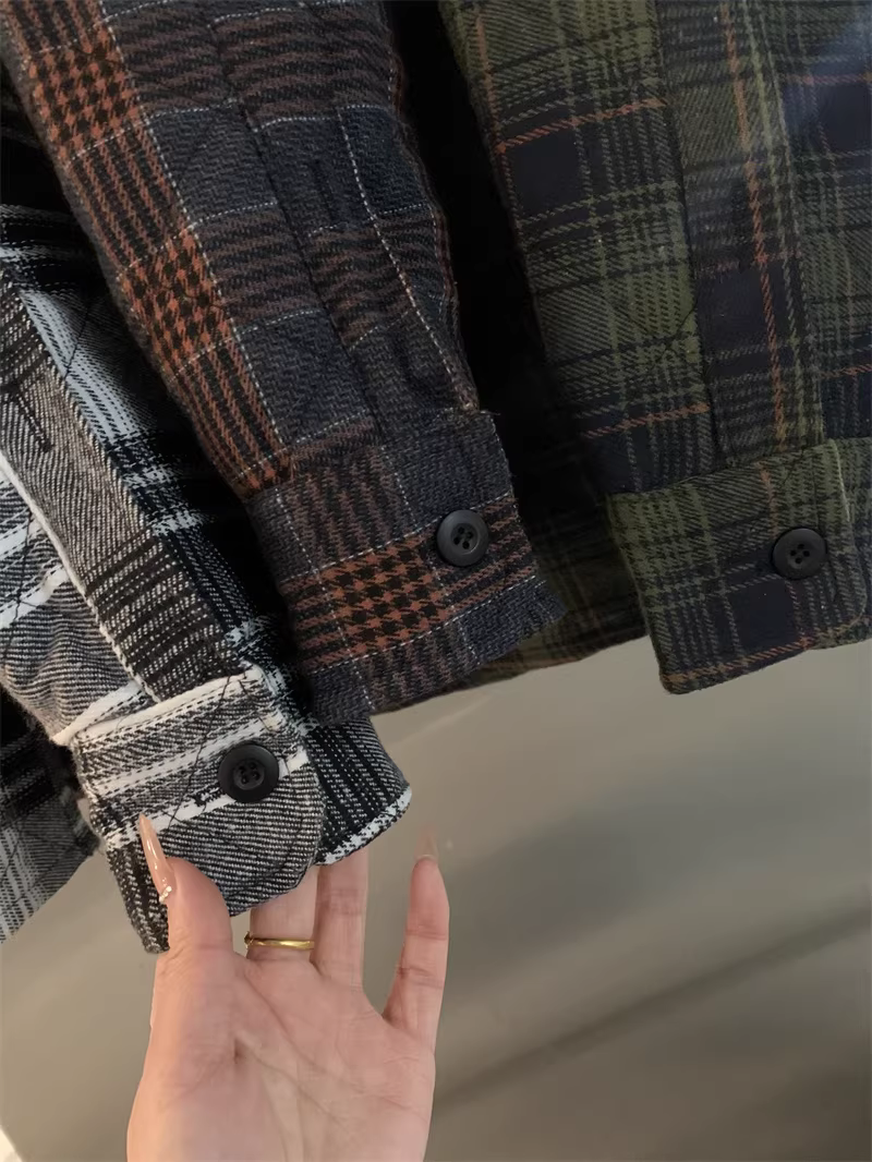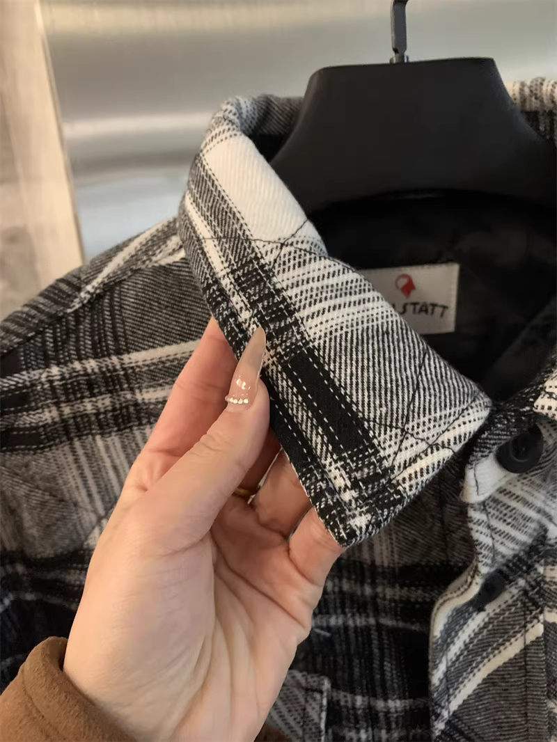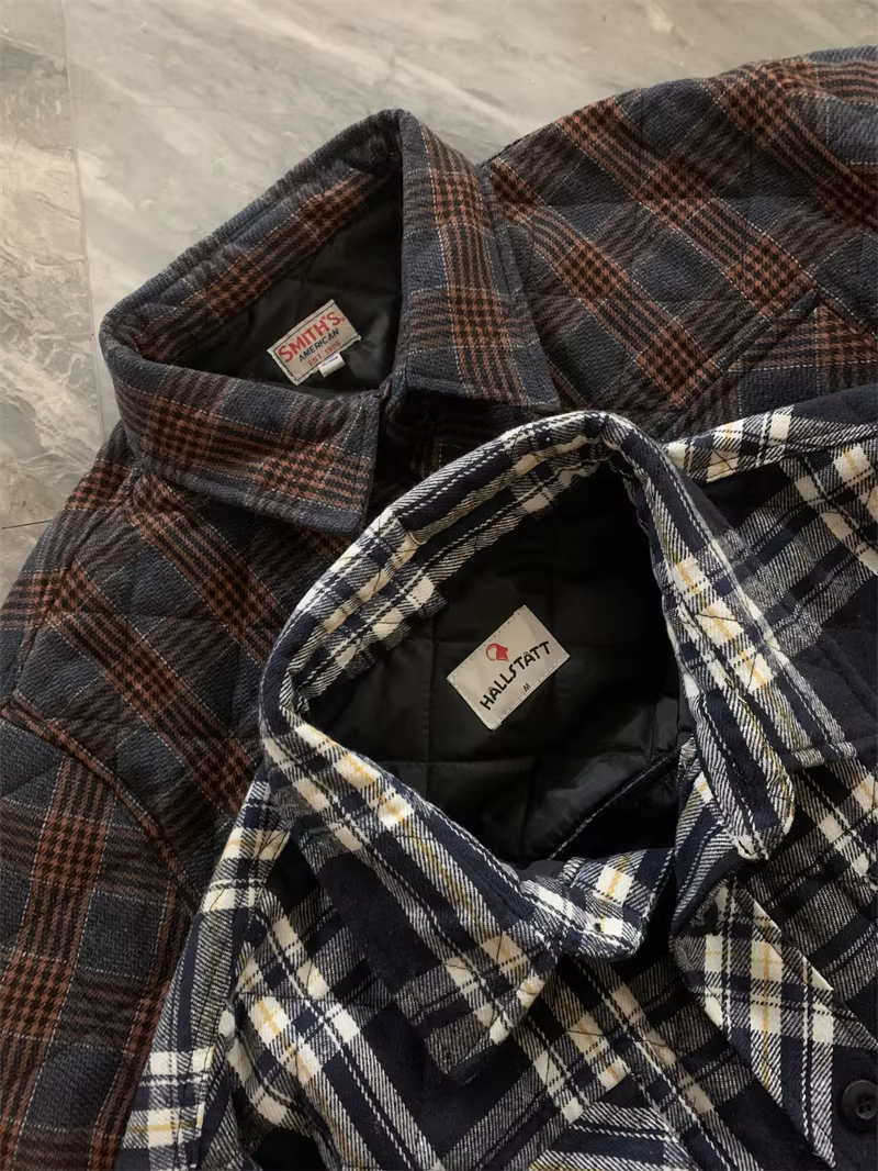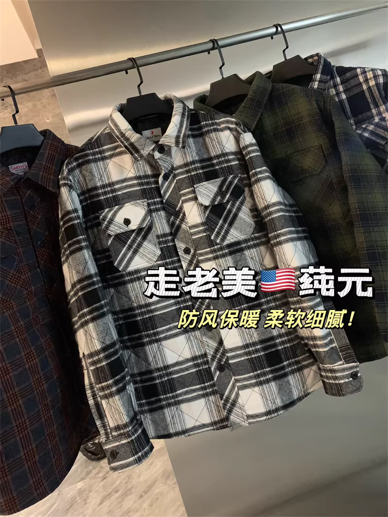 - Don Quixote, một thương hiệu độc đáo ở Bắc Mỹ! Áo khoác sơ mi làm việc mùa thu đông kiểu cổ điển, kẻ ca rô, chất liệu flannel, lót bông dành cho nam.