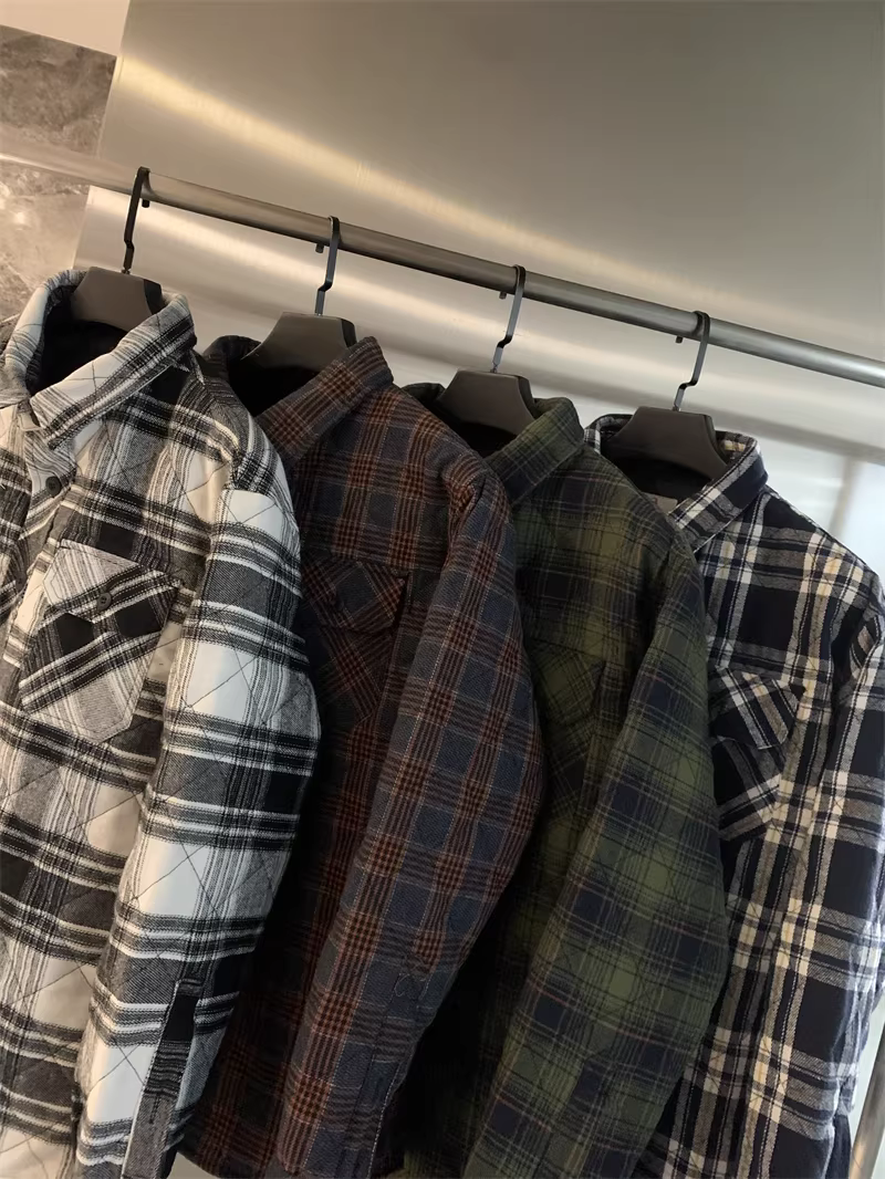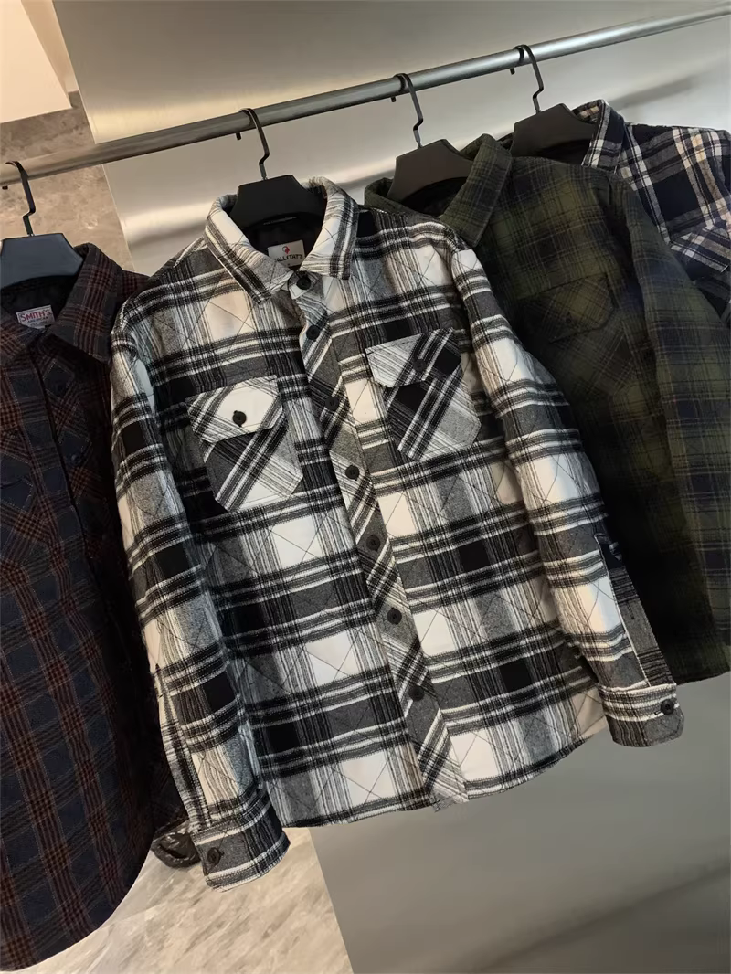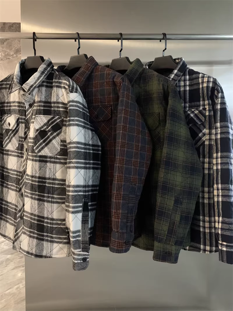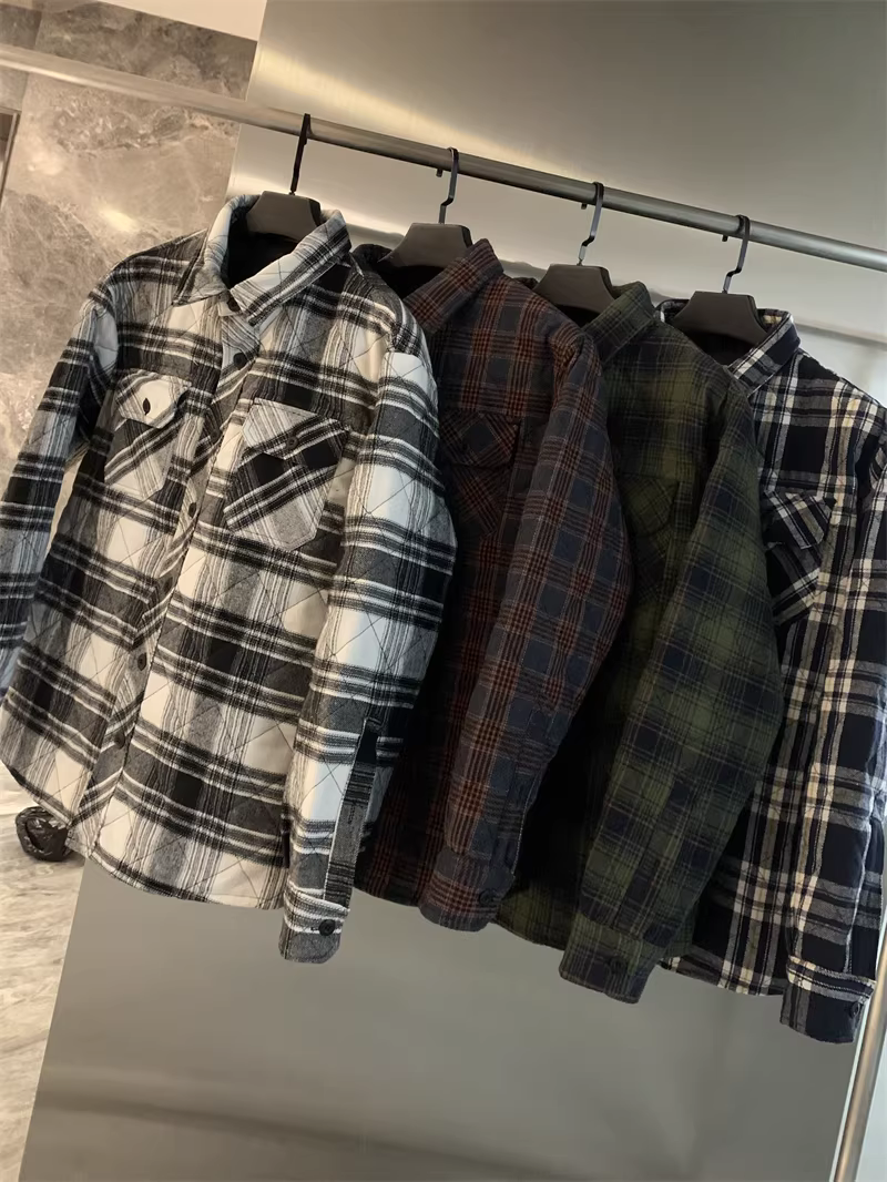 Don Quixote, một thương hiệu độc đáo ở Bắc Mỹ! Áo khoác sơ mi làm việc mùa thu đông kiểu cổ điển, kẻ ca rô, chất liệu flannel, lót bông dành cho nam.