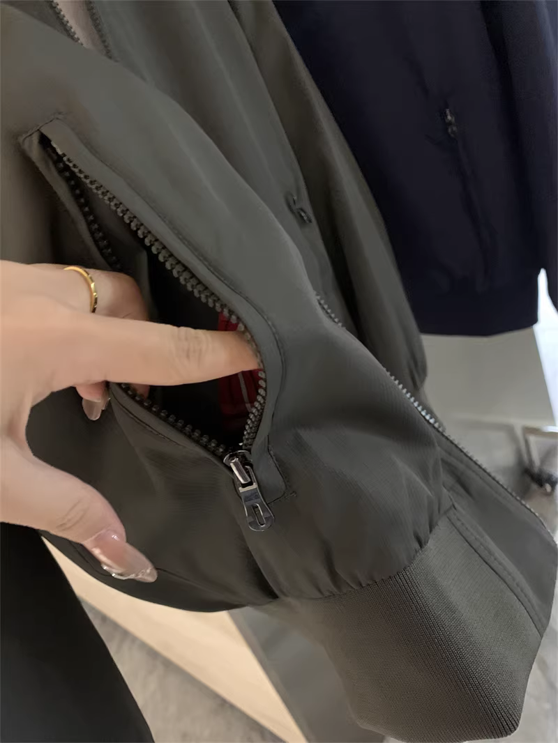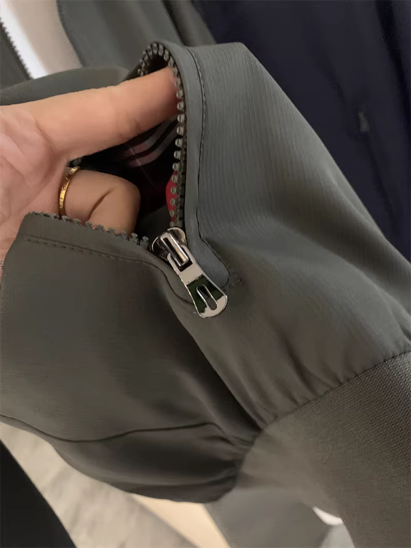 两侧是斜拉链口袋 双侧滚边+打枣套结 简洁美观又实用!