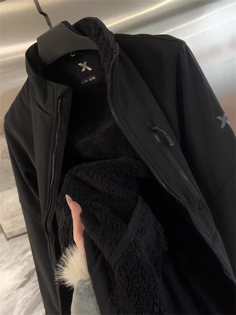 Don Quixote North American Brick Industry Outdoor! Áo khoác cổ đứng chống nước ngoài trời có lót lông cừu tổng hợp mùa thu đông dành cho nam.