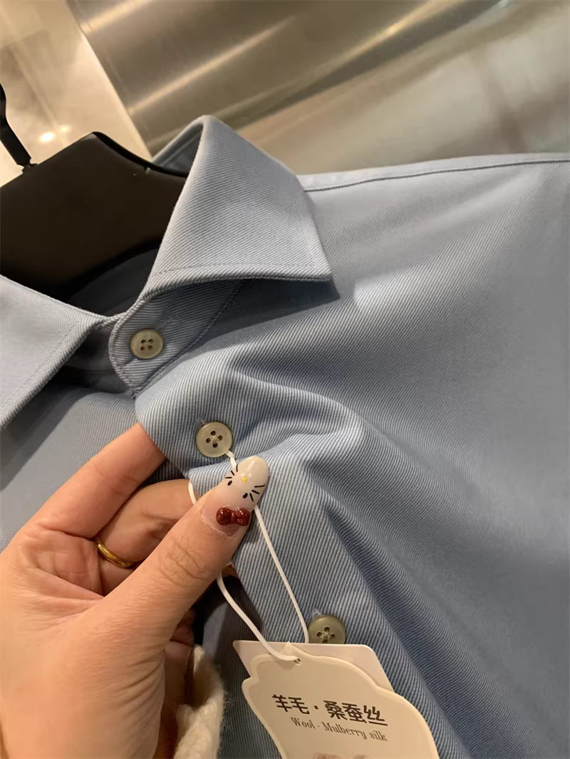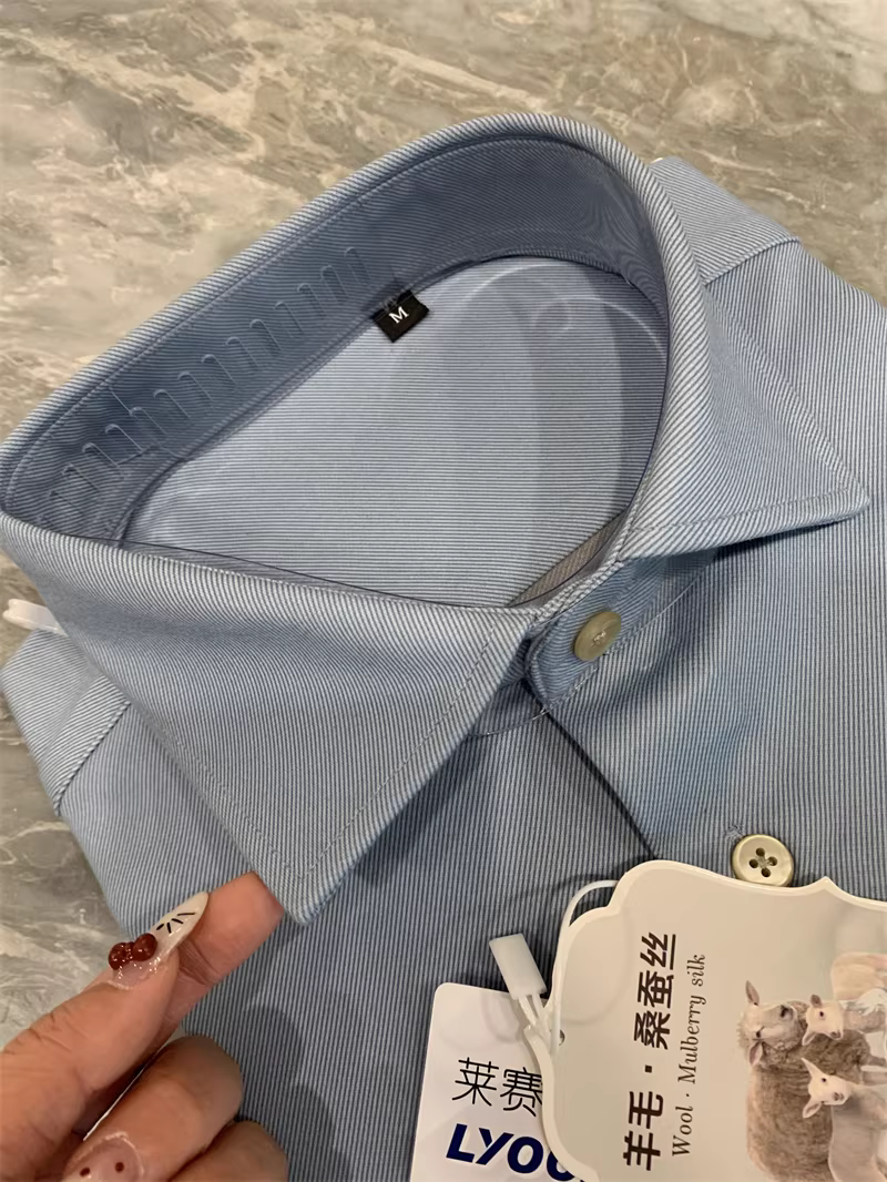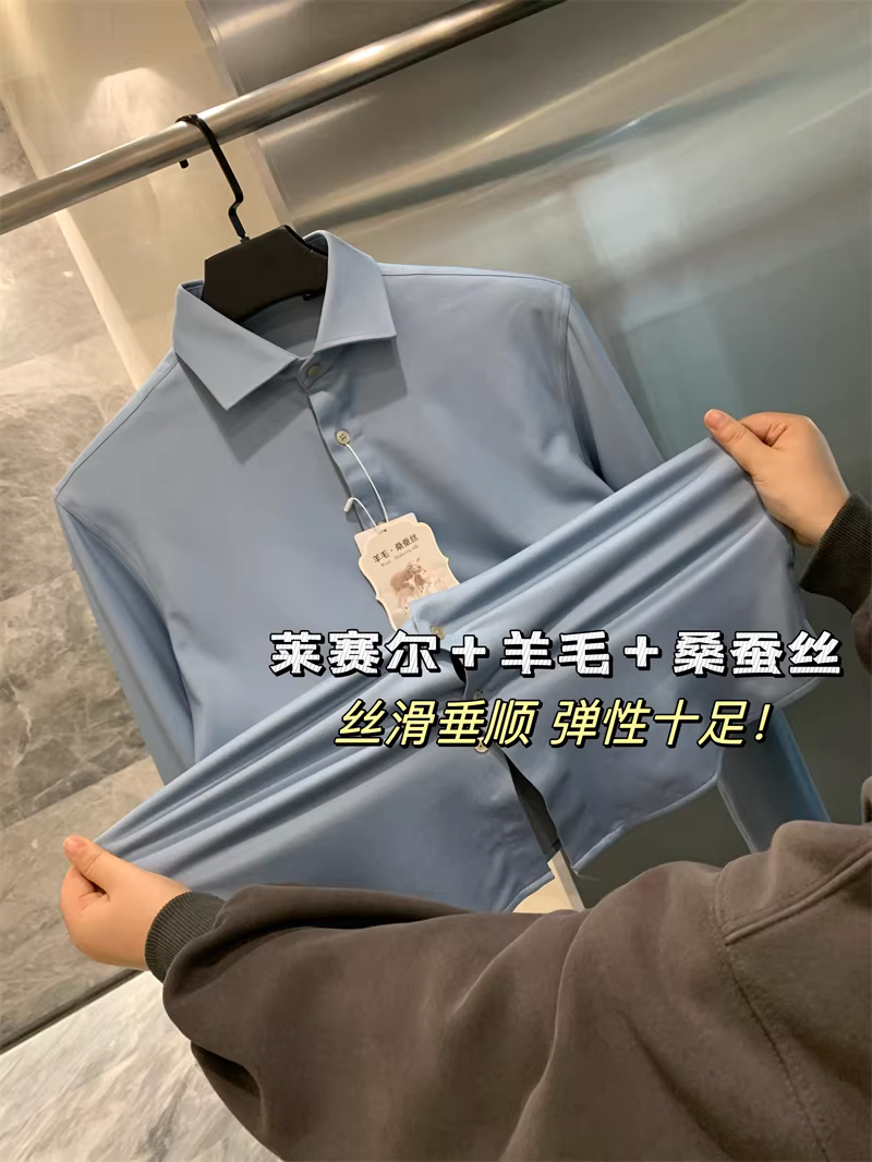 - Don Quixote Offline 5900! Áo sơ mi nam chất liệu len cao cấp + tơ tằm + lyocell, màu trơn, phong cách thường ngày, mùa thu đông