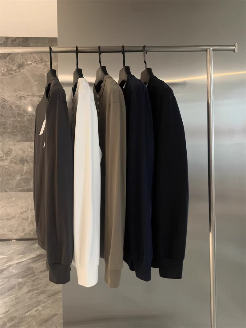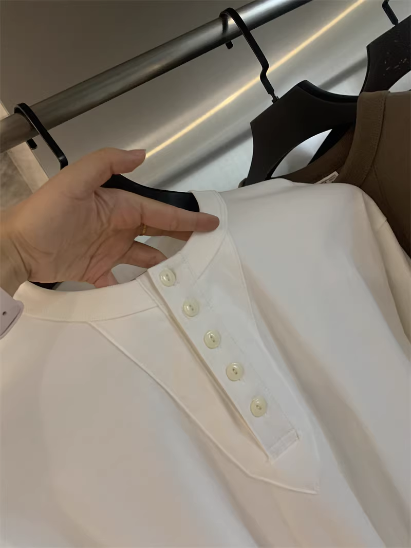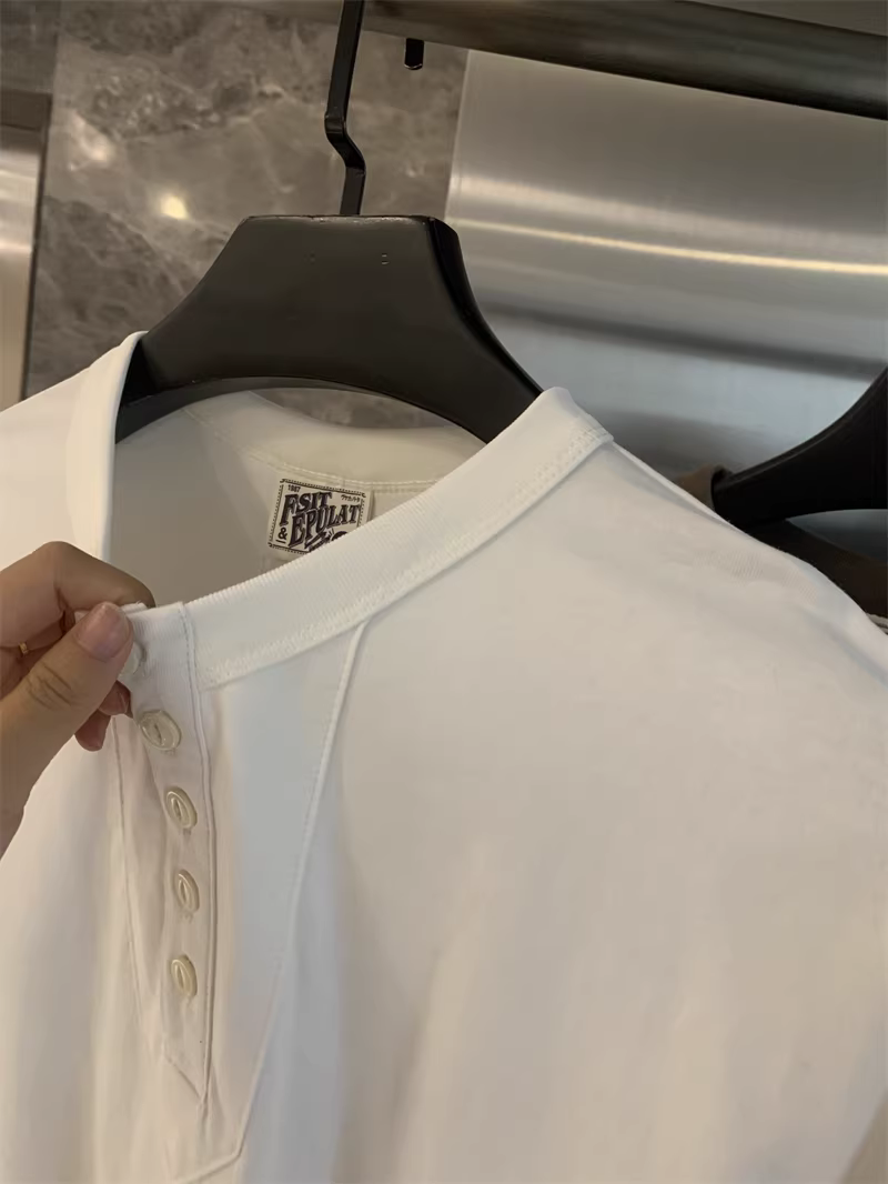 - Don Quixote, phong cách giản dị mạnh mẽ của Mỹ! Cổ áo Henry cổ điển! Áo thun dài tay chất liệu cotton nguyên chất dành cho nam mùa thu.