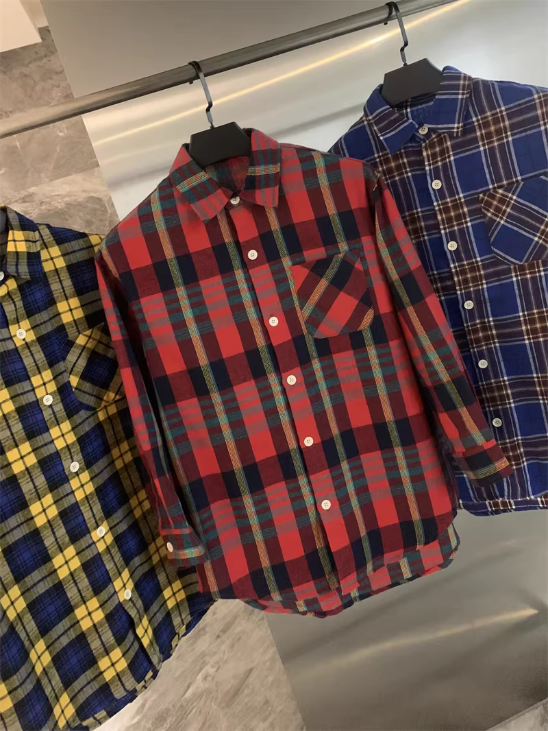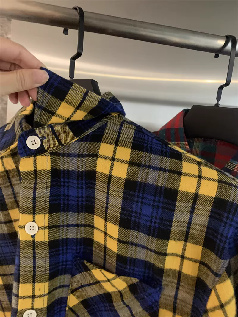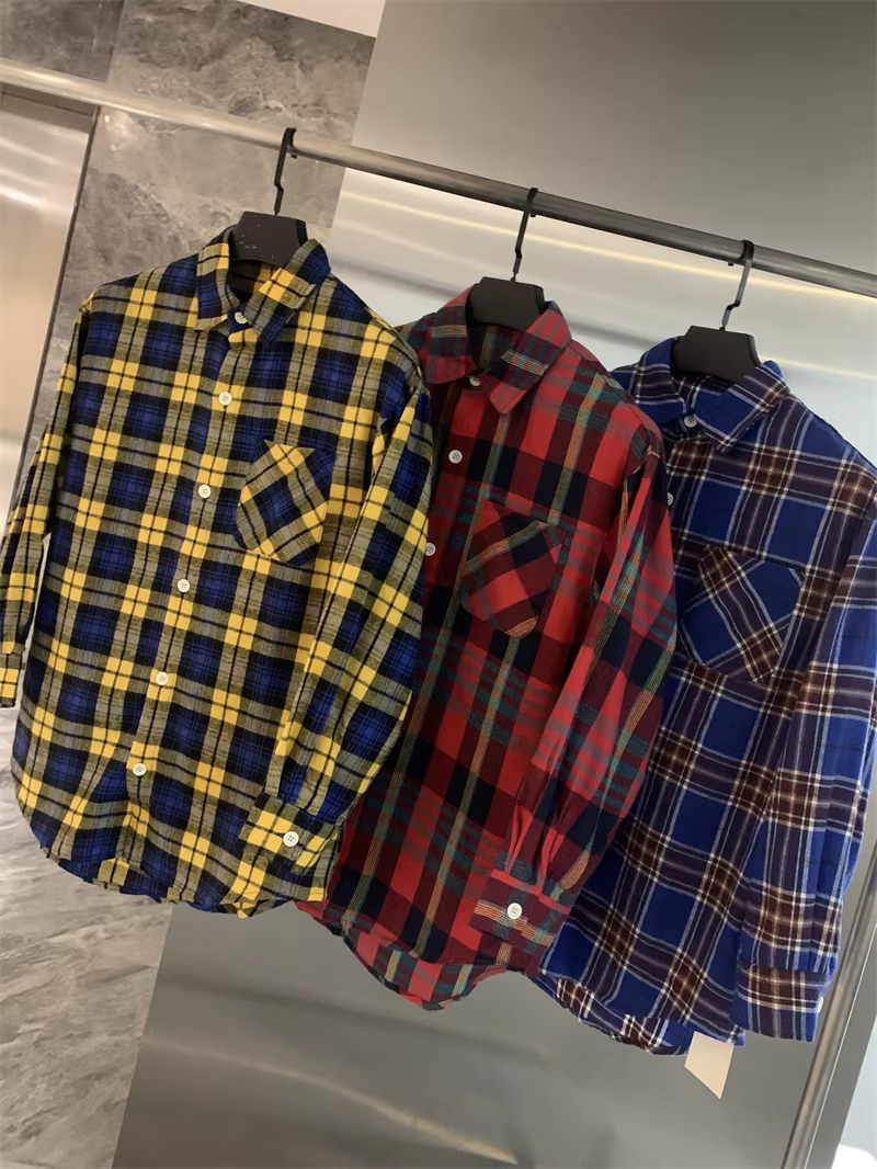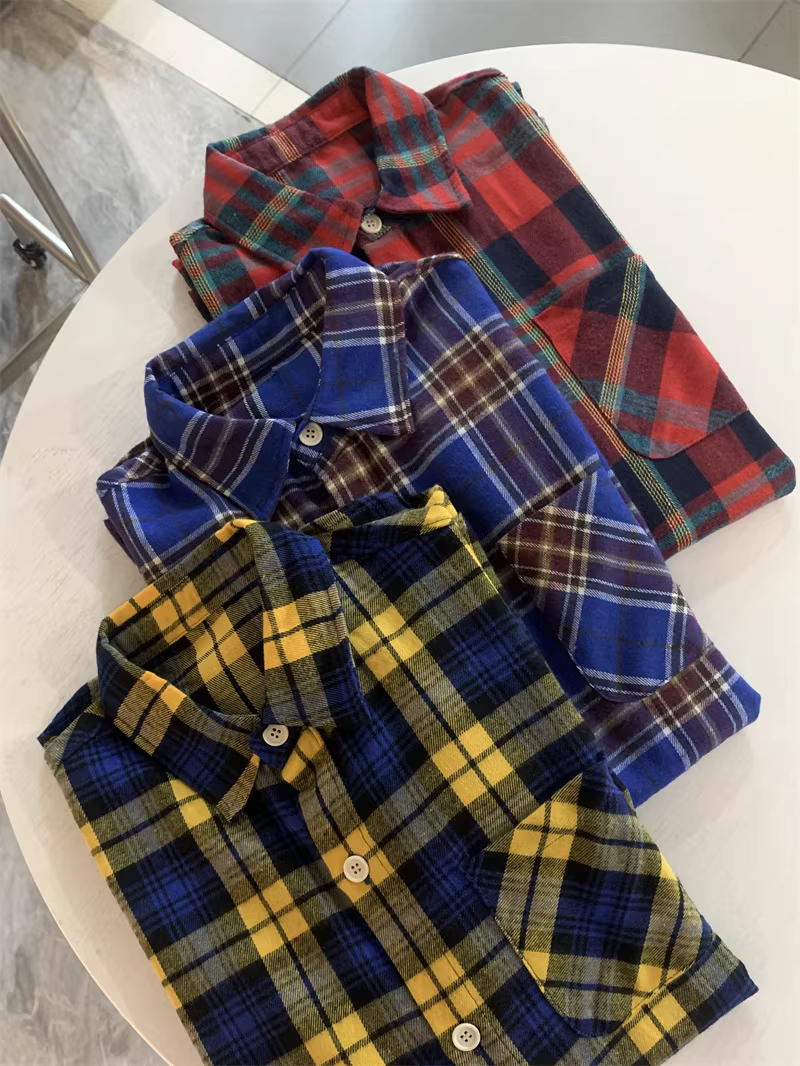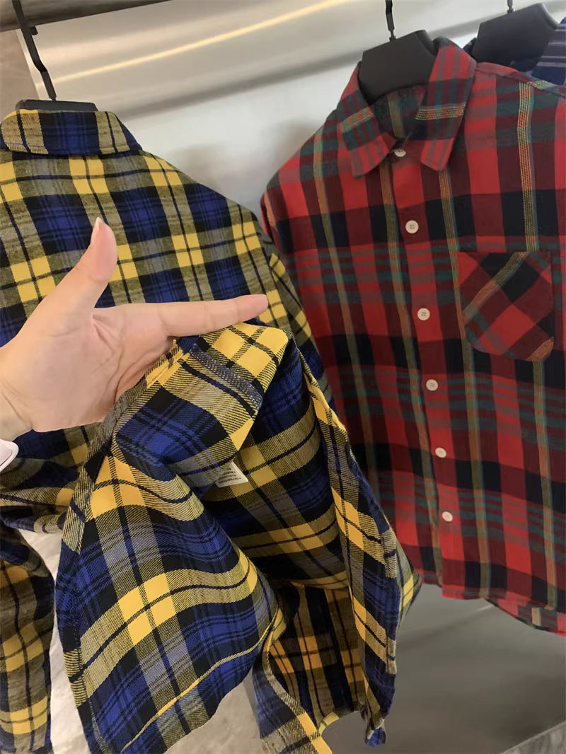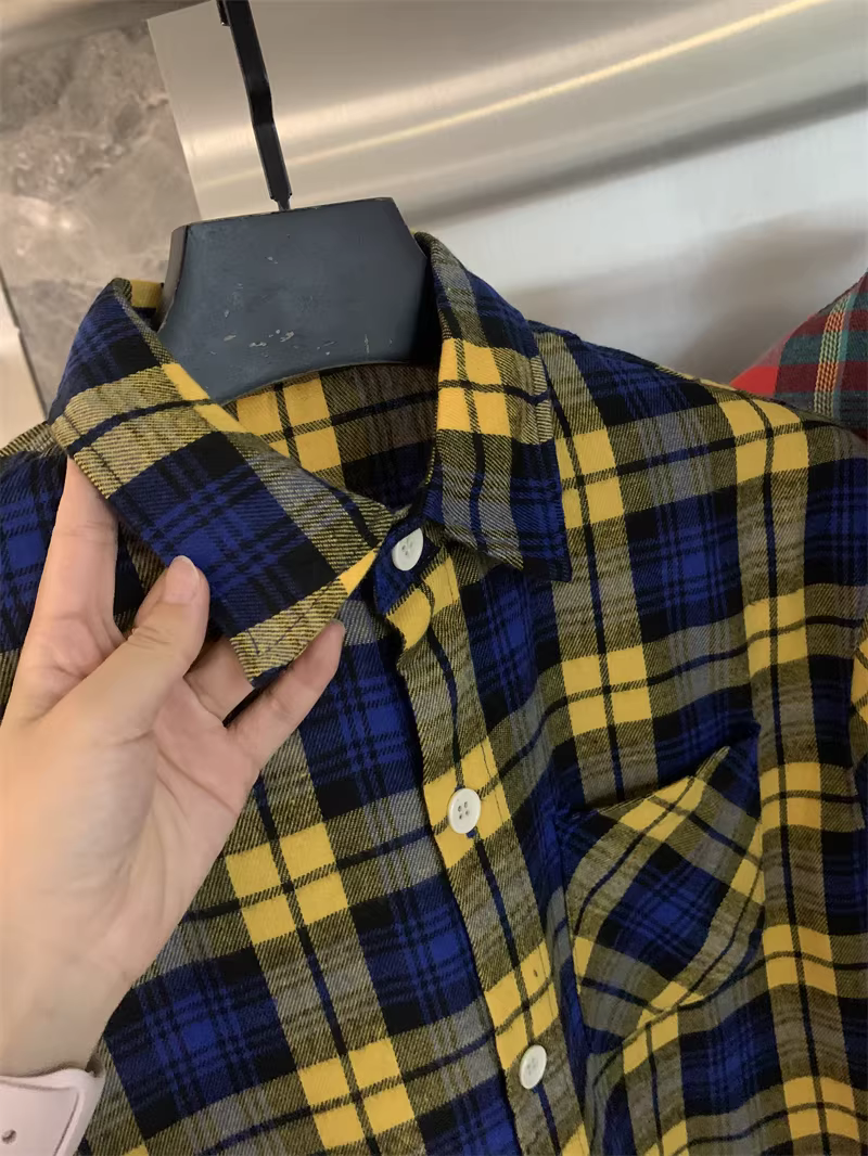 - Don Quixote phong cách retro Mỹ! Áo sơ mi kẻ caro dài tay chất liệu flannel cotton 100% chải kỹ! Áo sơ mi nam mùa thu phong cách thường ngày