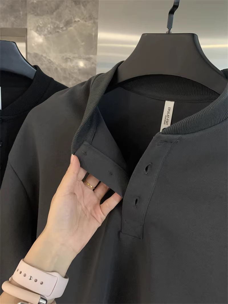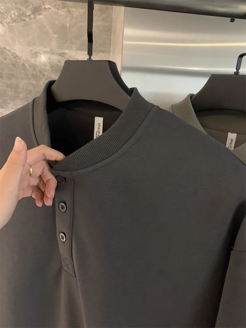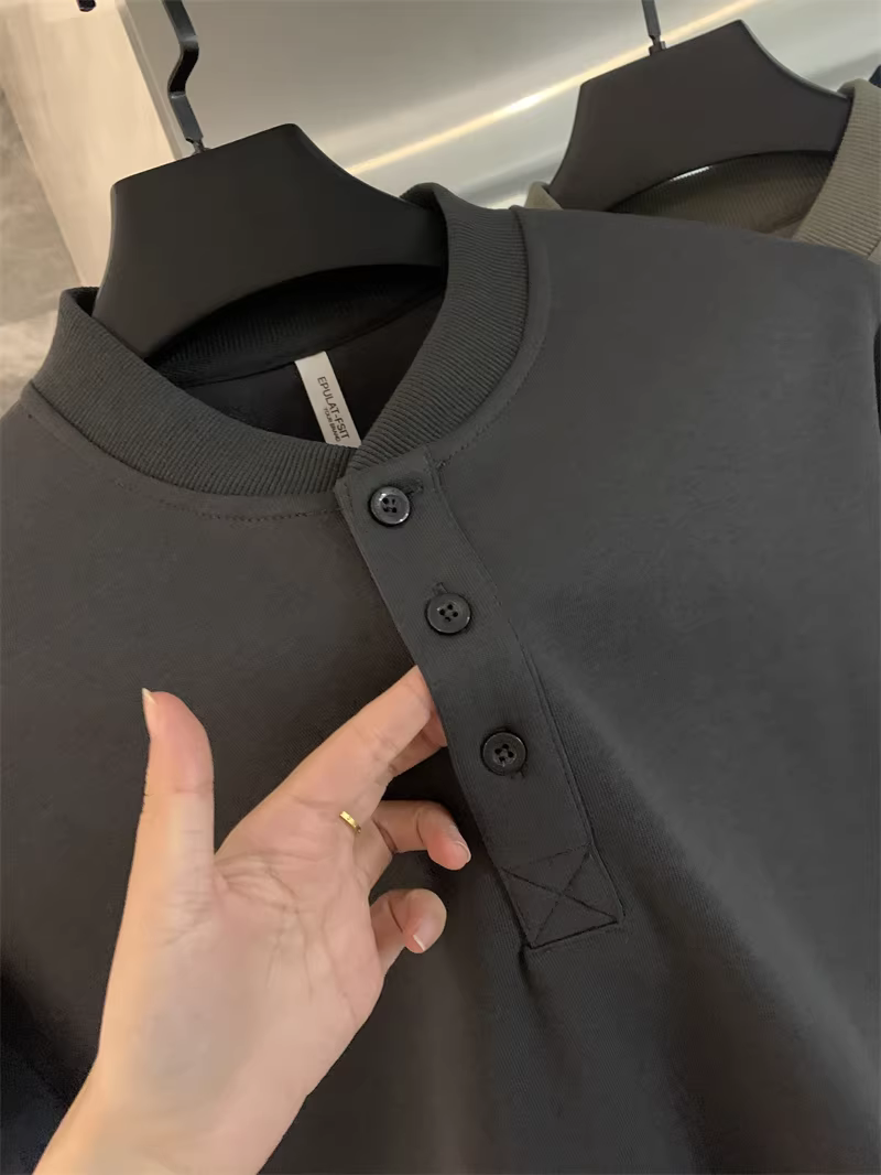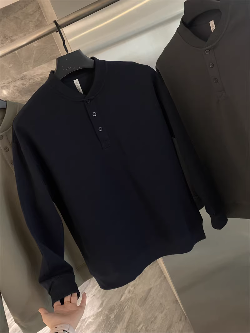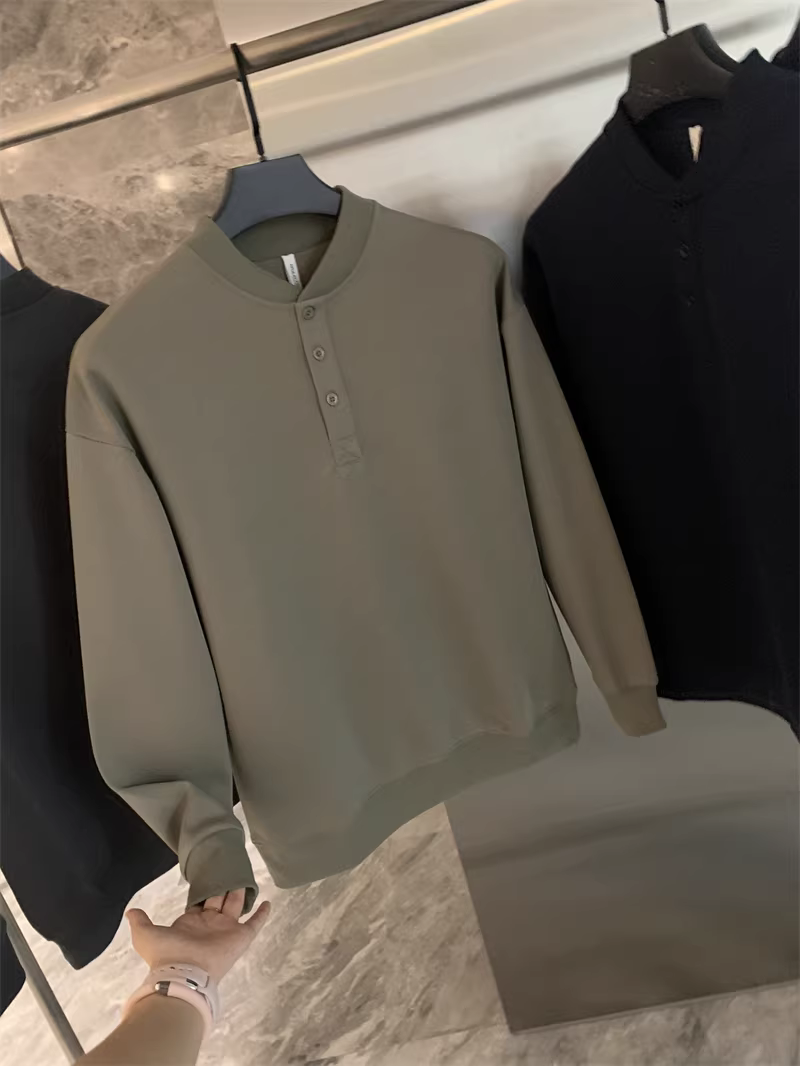 - Don Quixote phong cách retro Mỹ! Cổ áo Henry cổ điển! Áo nỉ nam thời trang đa năng màu trơn mùa thu