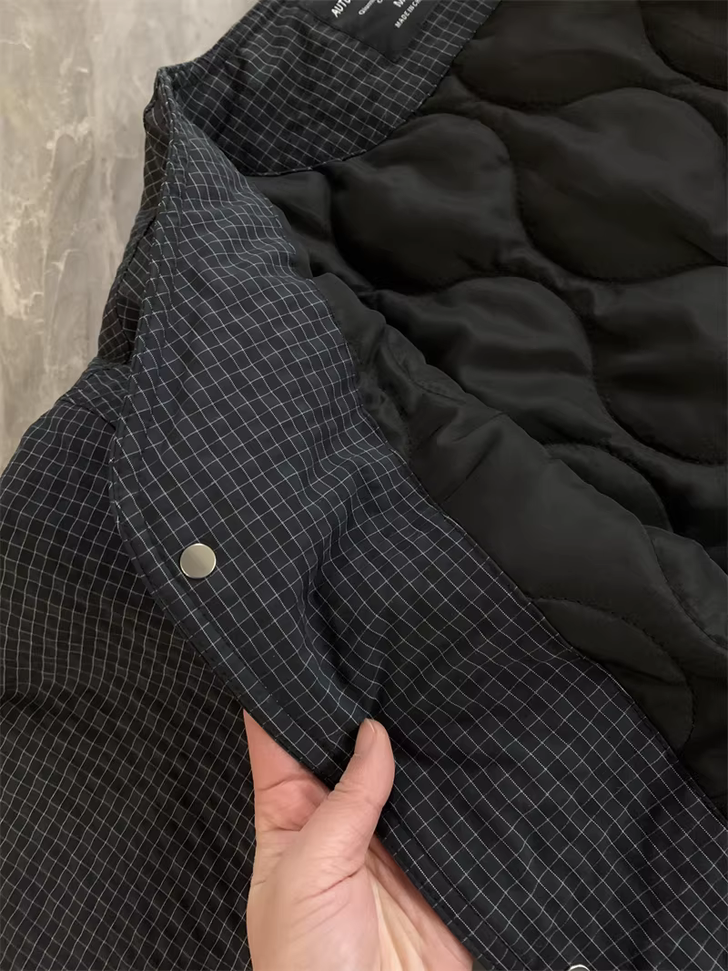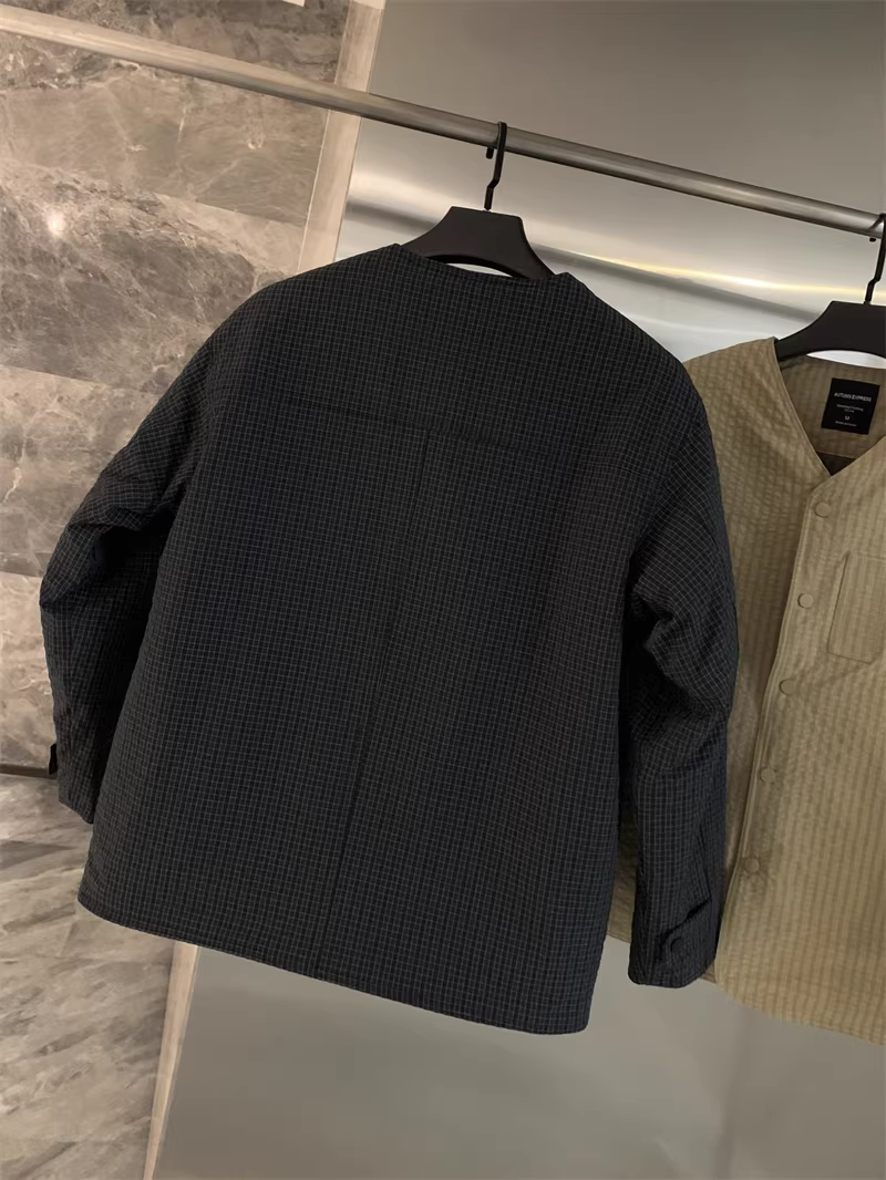 - Don Quixote phong cách retro Nhật Bản! Áo khoác cotton không cổ giữ ấm kiểu kẻ sọc giữ ấm cho cặp đôi hợp thời trang
