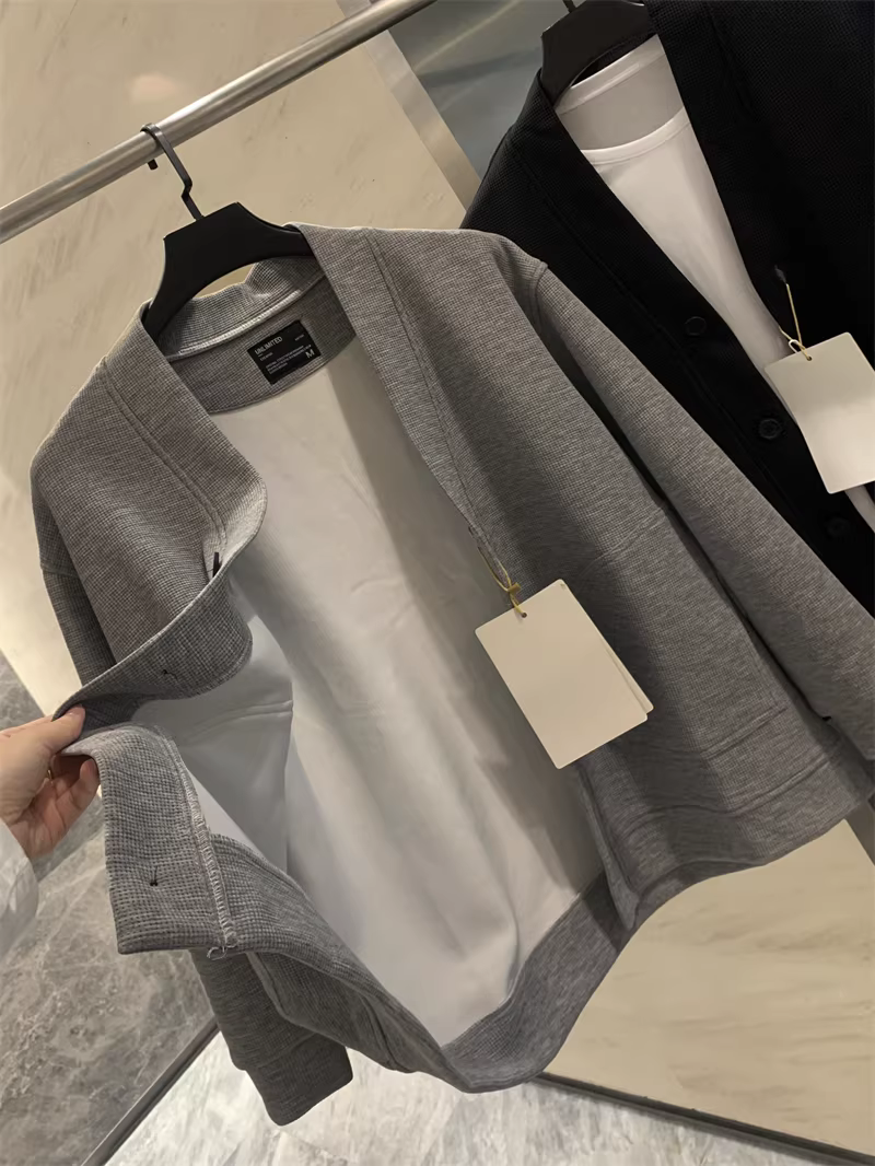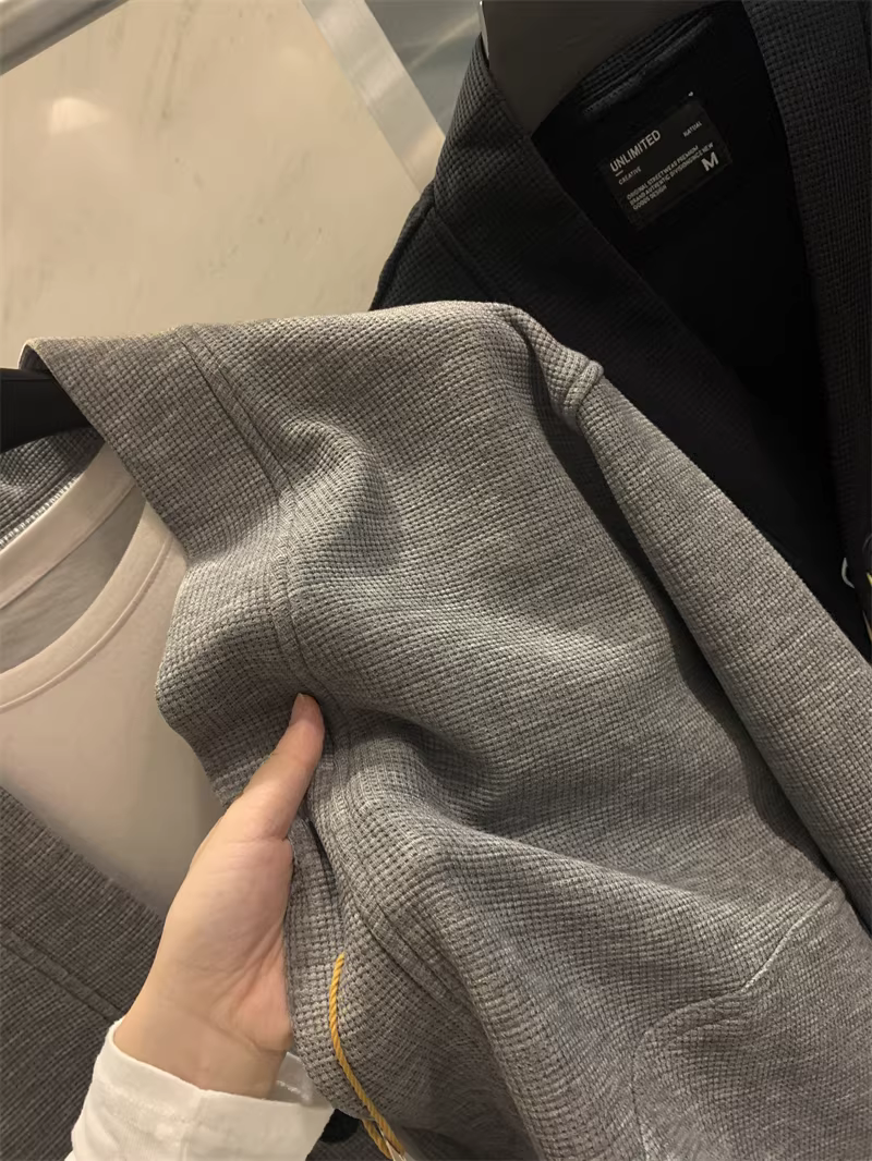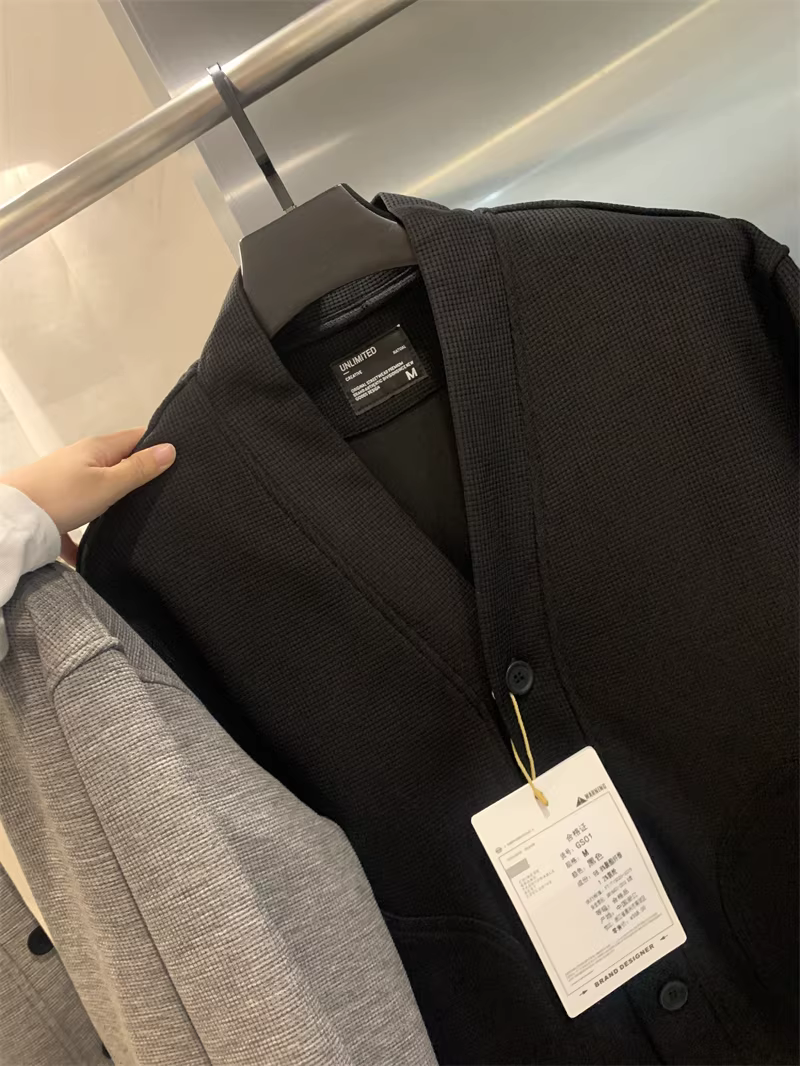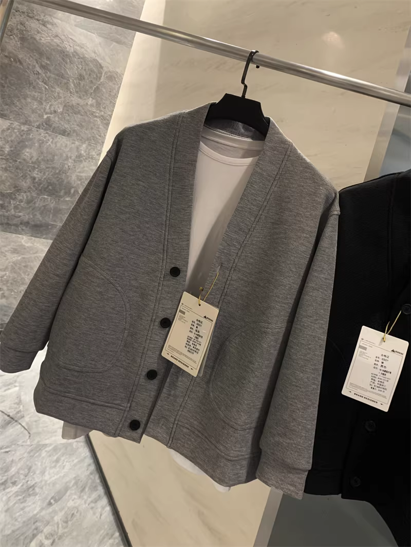 - Don Quixote phong cách retro Nhật Bản! Vải waffle 400G! Áo khoác cardigan cổ chữ V đơn giản, giản dị dành cho nam và nữ trong mùa xuân và mùa thu.