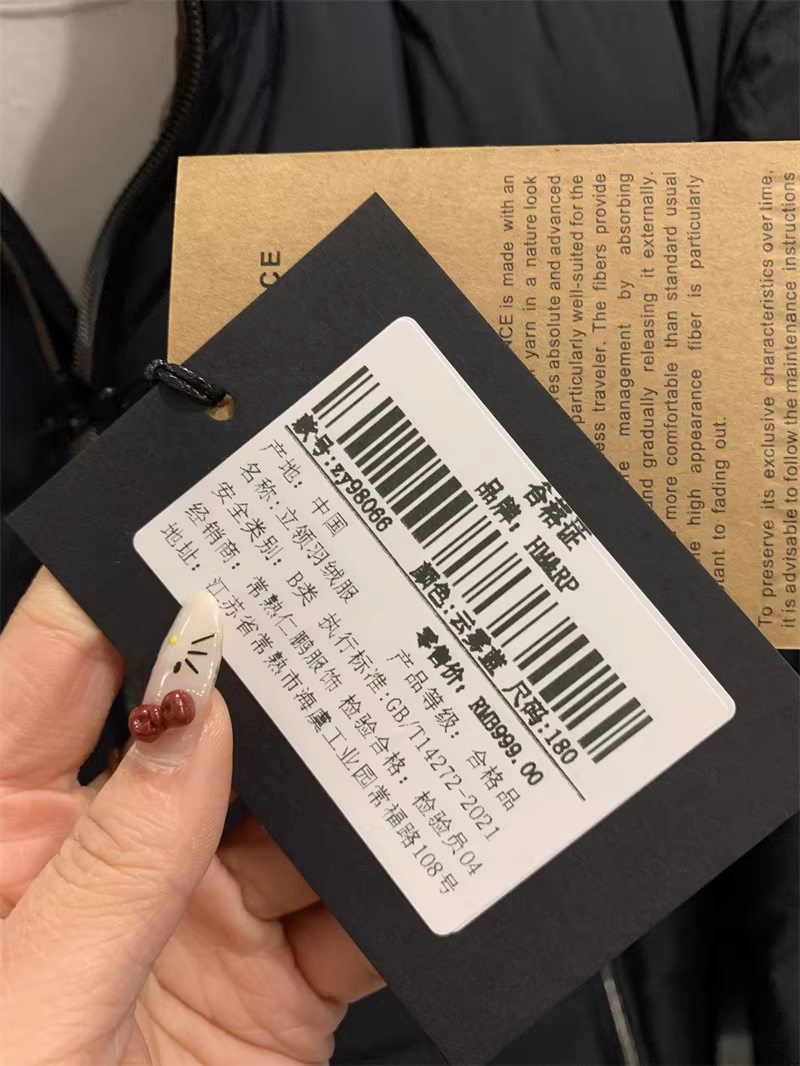 | 190 | 肩宽50.8 | 胸围126 | 袖长66.5 | 衣长74 | 充绒量99g |