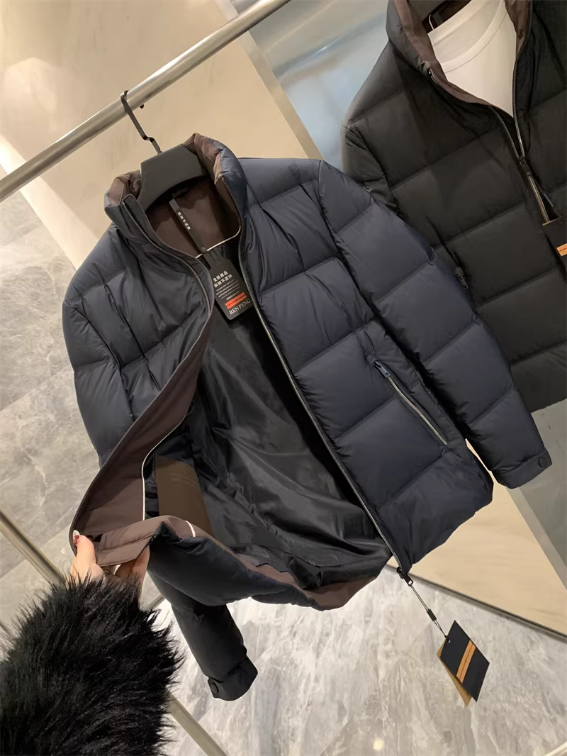 Don Quixote, phong cách sang trọng cao cấp! Áo khoác lông vịt! Độ phồng cao, áo khoác cổ đứng mùa thu đông dành cho nam.