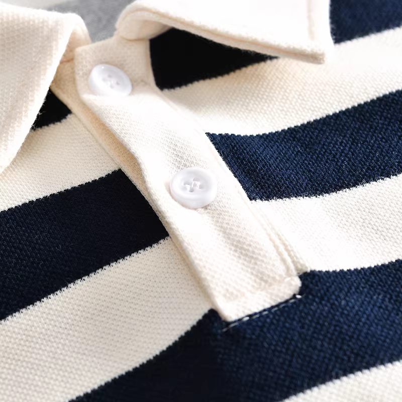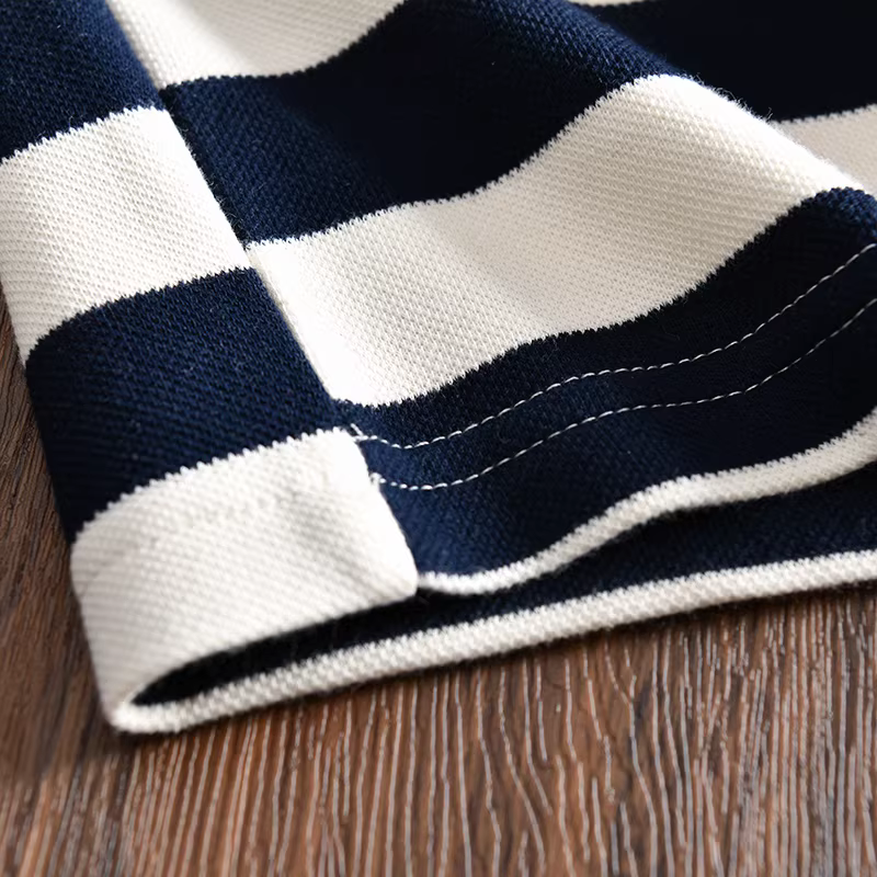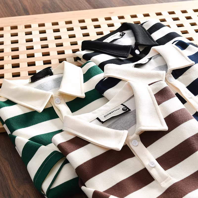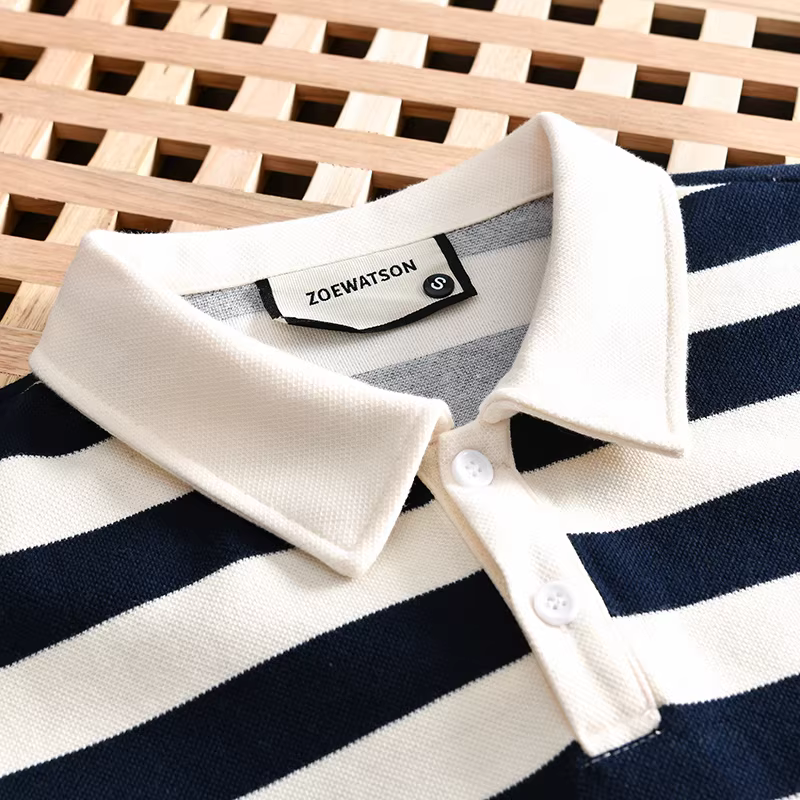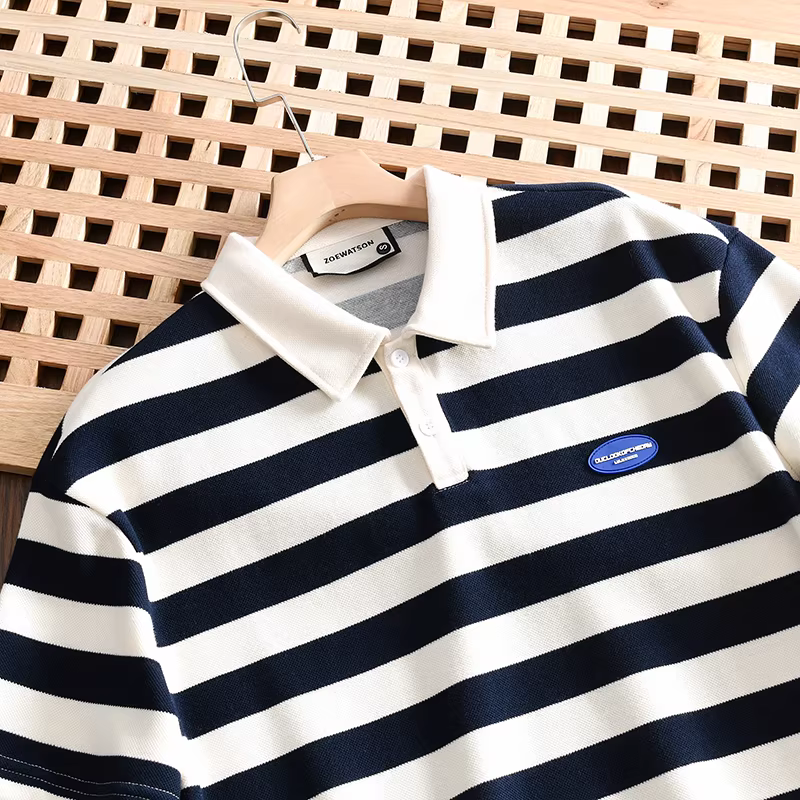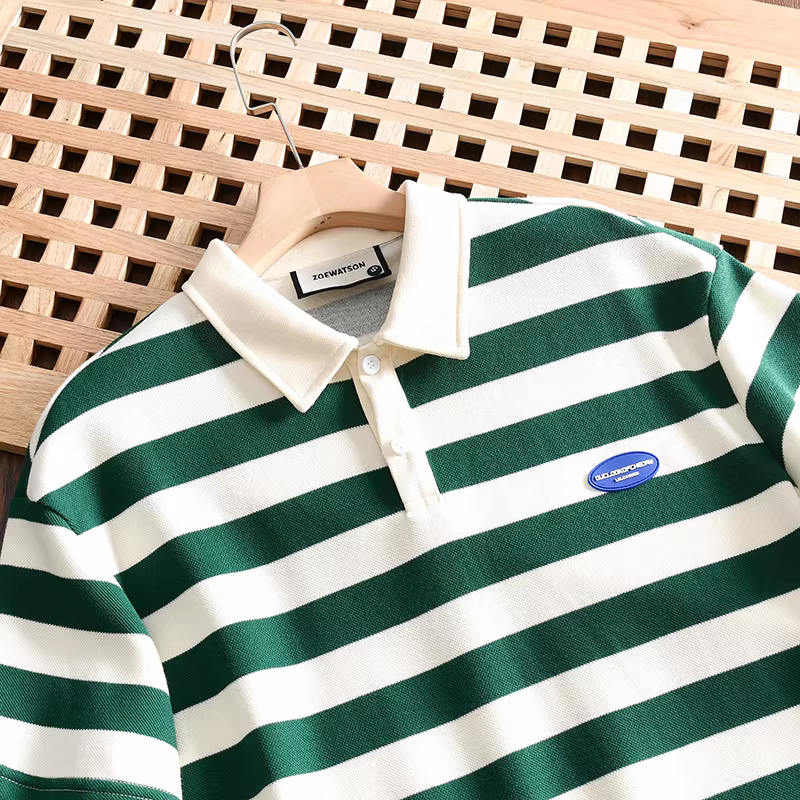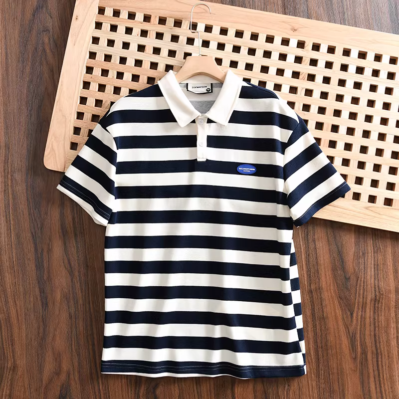 Don Quixote phong cách tối giản Nhật Bản! 250g cotton pique! Áo sơ mi POLO ngắn tay, dáng rộng, sọc, đa năng, thời trang dành cho nam