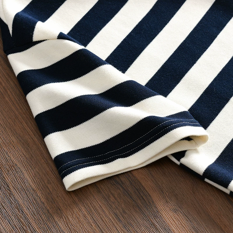 - Don Quixote phong cách tối giản Nhật Bản! 250g cotton pique! Áo sơ mi POLO ngắn tay, dáng rộng, sọc, đa năng, thời trang dành cho nam