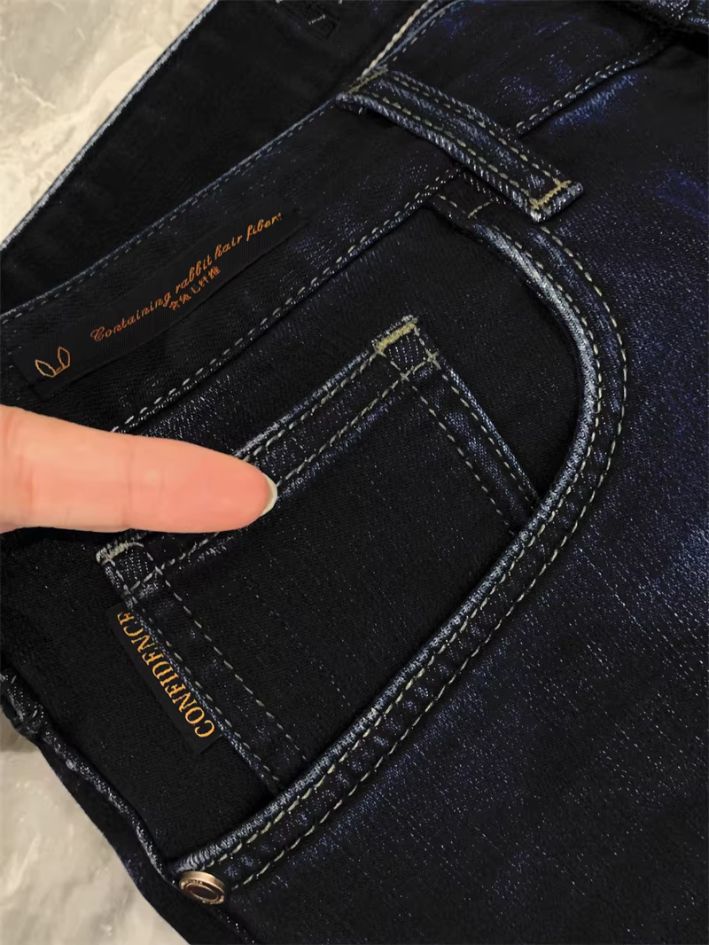 - Don Quixote Quần jean lông thỏ sáng tạo! Quần jean thông thường đa năng, thoáng khí như mây, nhiệt độ không đổi, độ đàn hồi cao dành cho nam giới vào mùa thu đông.