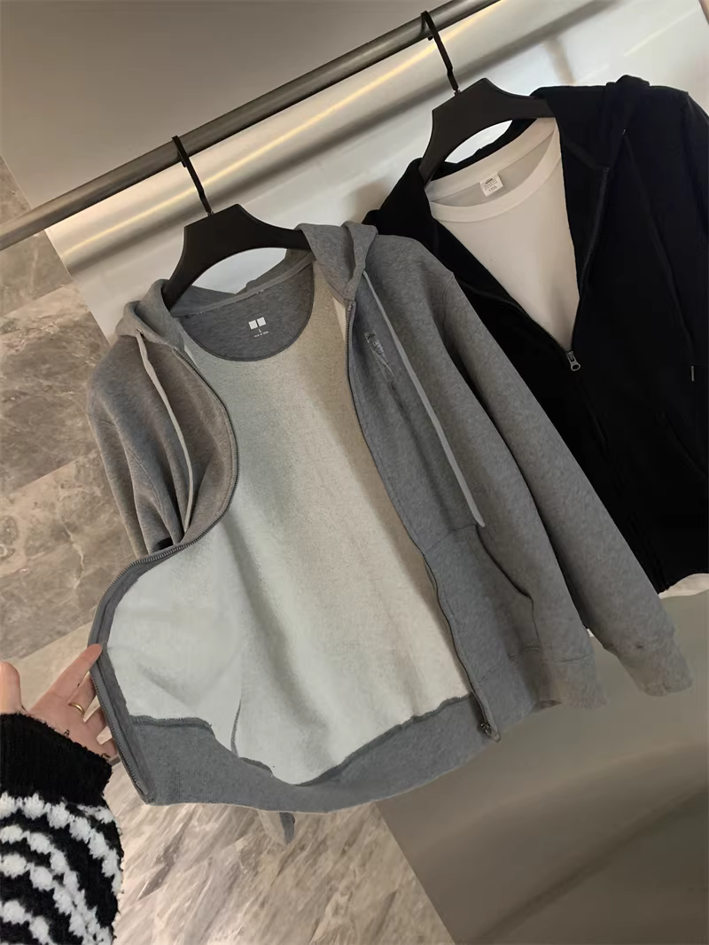 Don Quixote rất đơn giản và đa năng! Lớp lót lông cừu có vảy cá! Áo len cardigan có mũ trùm đầu thông thường dành cho các cặp đôi vào mùa xuân, mùa thu và mùa đông.