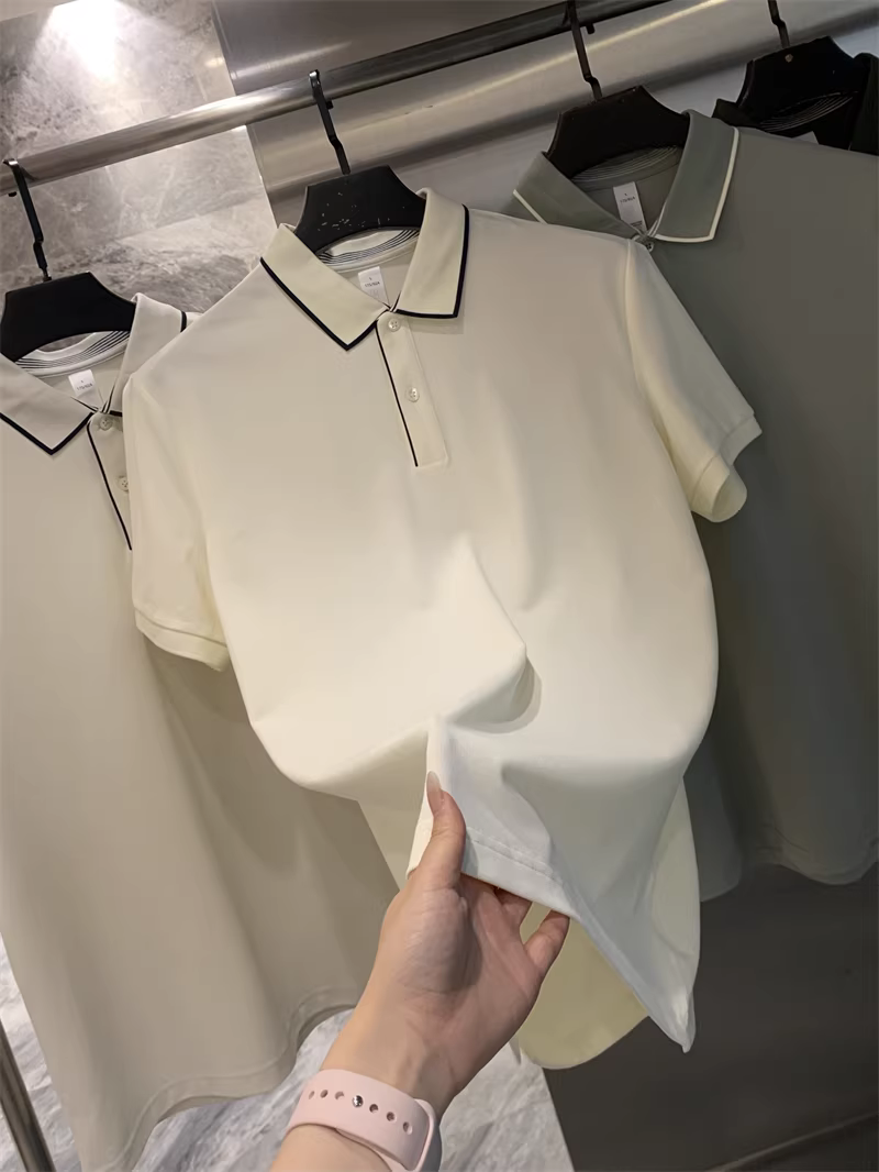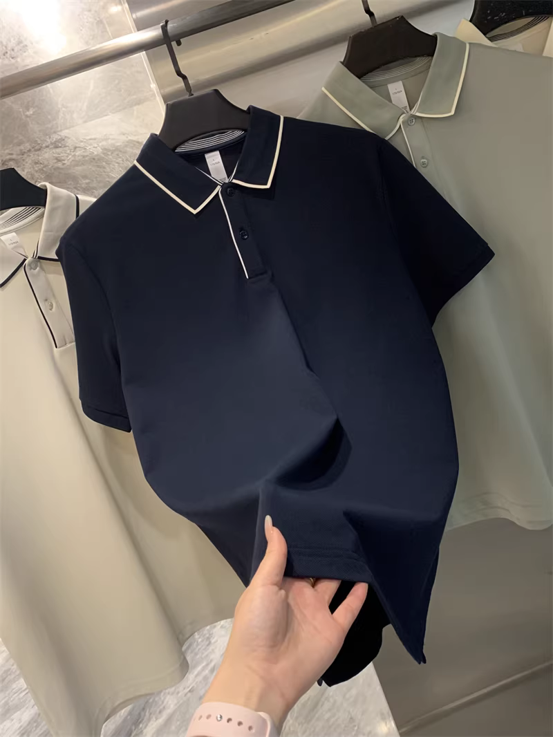 Don Quixote rất giản dị và thanh lịch! Áo polo mùa hè kiểu dáng công sở thanh lịch, phối màu thời trang, cổ sơ mi và tay ngắn dành cho nam.