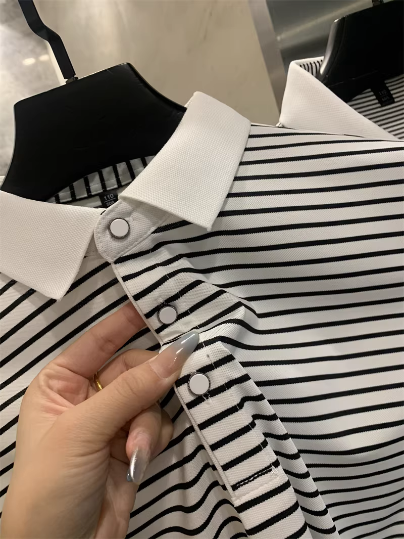 - Don Quixote rất giàu tính nghệ thuật! Áo polo nam ngắn tay, cổ trụ, sọc thô/mịn nhuộm sợi! Phong cách mùa hè năng động.