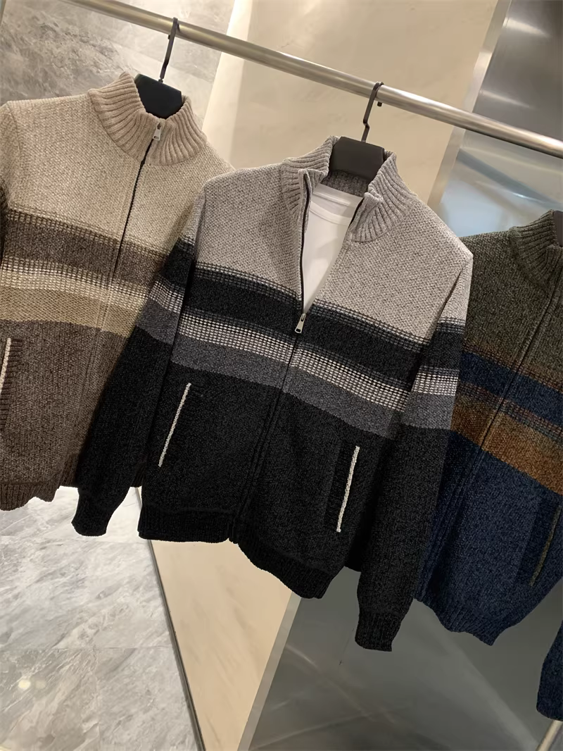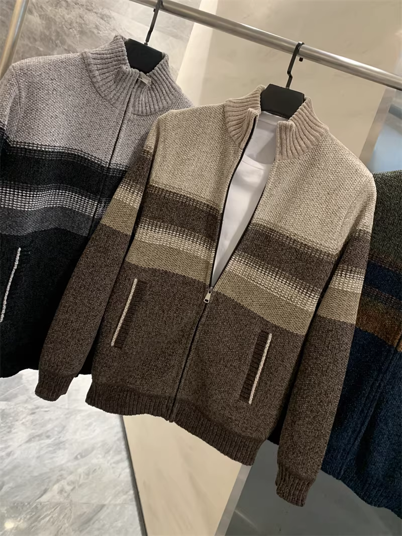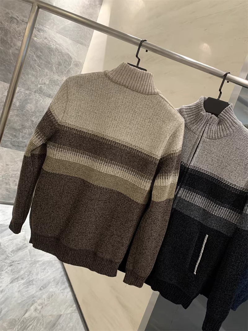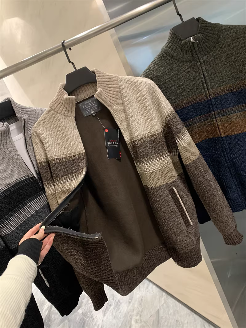 Don Quixote rất mềm mại và tinh tế! Áo len dệt kim họa tiết hoa + lớp lót lông nhung dài! Áo khoác len cổ bóng chày mùa thu đông dành cho nam.